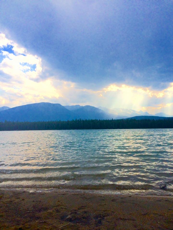 As usual, while not as nice out as our previous visit, the drive in is nothing short of scenic. If you’re arriving through the park from Highway 16 (From Hinton/Edson/Edmonton), the inevitable 45 minute or so drive from park entrance to town can be enchanting. There’s a lovely shallow lake to stop at on the way in, too, that is a great photo op.