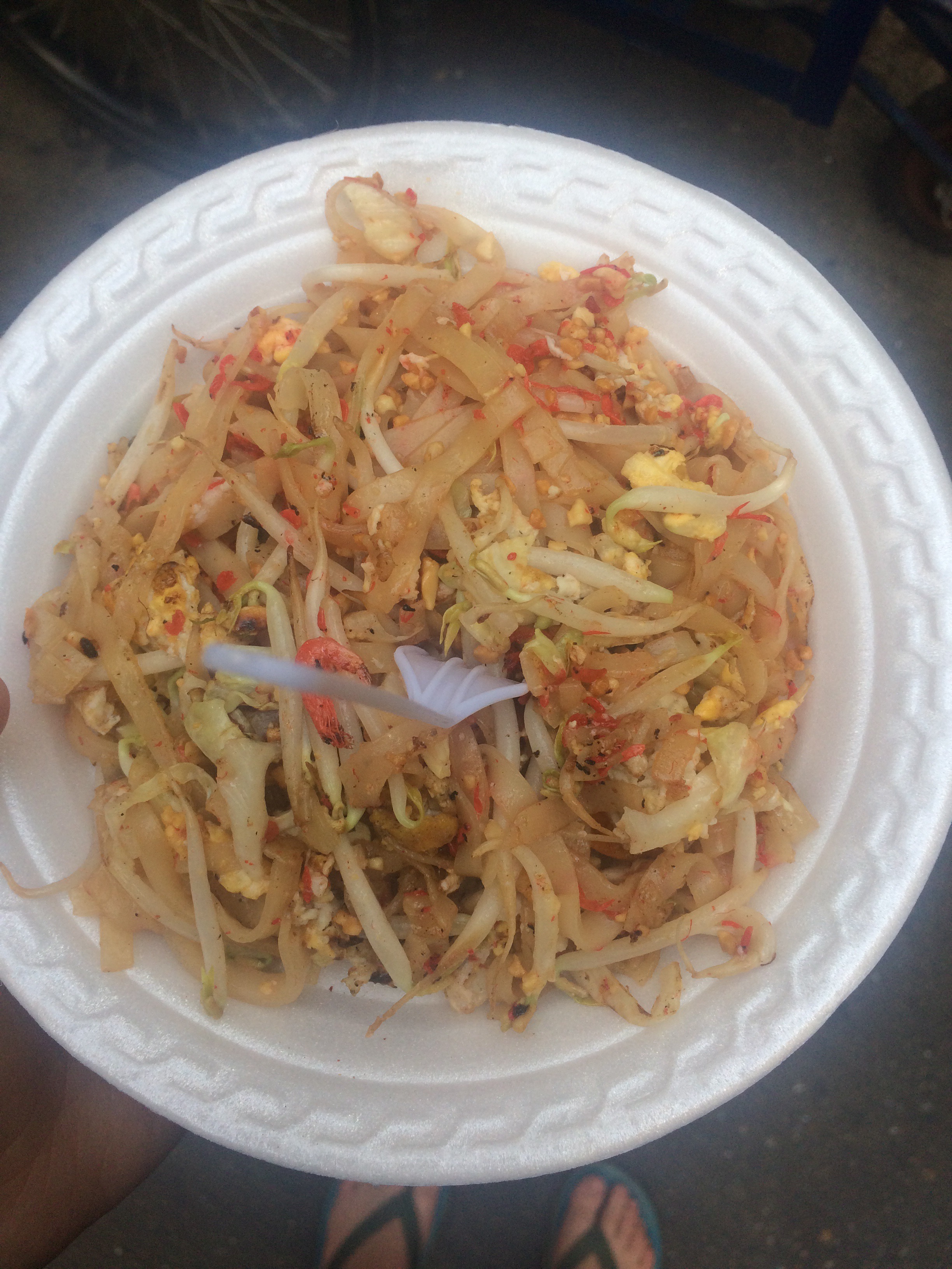 After figuring my life out I wandered around. I found a temple near my hostel and took some photos, then ventured to Khao San Road where I snacked on plenty of street food! Highlight of the day was definitely the $1 pad Thai! Since I was killing time and walking around, I treated myself to a foot massage for $4. Life is good so far!