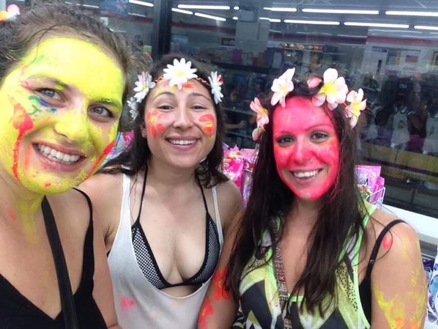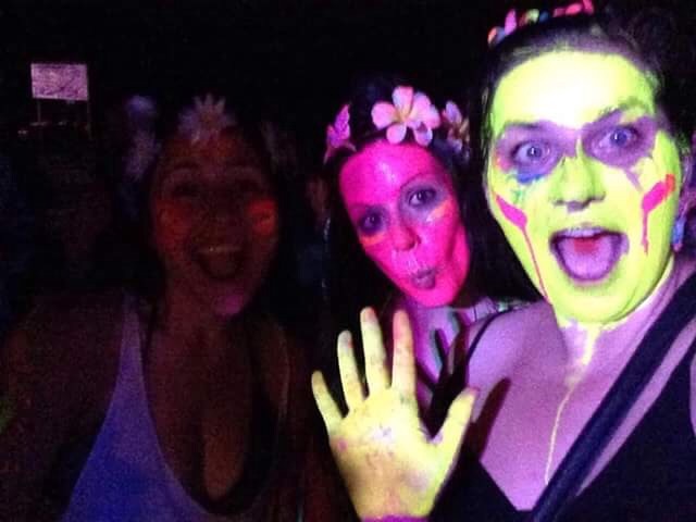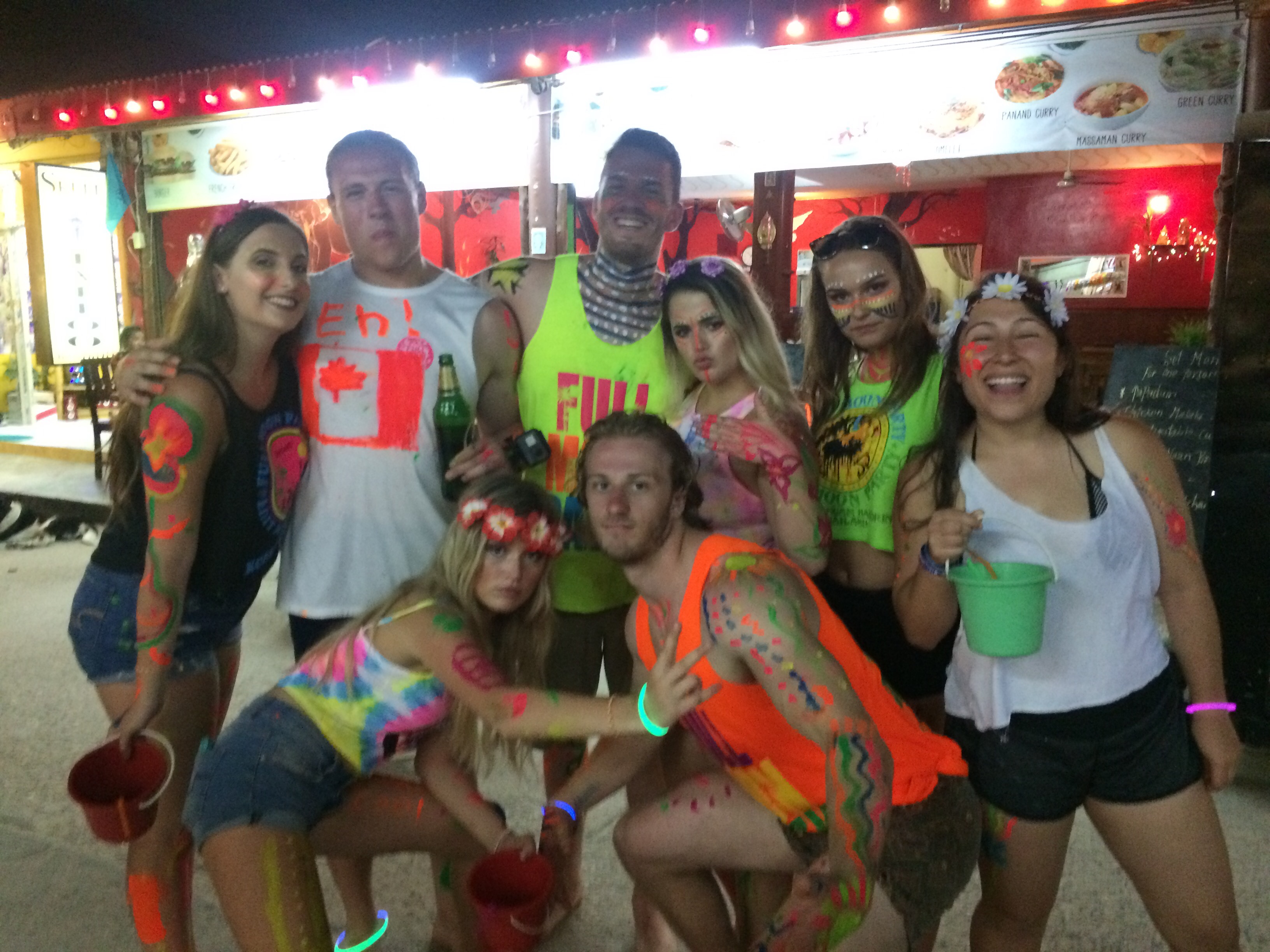 It was an amazing day but also Full Moon party night, which meant the night hadn’t even started. If you want to have an unreal experience and hang out on a beach with 10000 people, this party is for you. It really is something else! The crowd was definitely 70% Canadian, with a 30:70 female to male ratio. You couldn’t walk down the beach without making a new friend! There were fire jump ropes, a fire limbo, and a giant slide, one of which I partook in (no fire, don’t worry mom). And of course, buckets and street food galore. The classic bucket is made up of Thai whiskey, coke, and Thai red bull. One of the fun traditions for Full Moon is body painting- the 2 girls I hung out with all night who got into the painting.