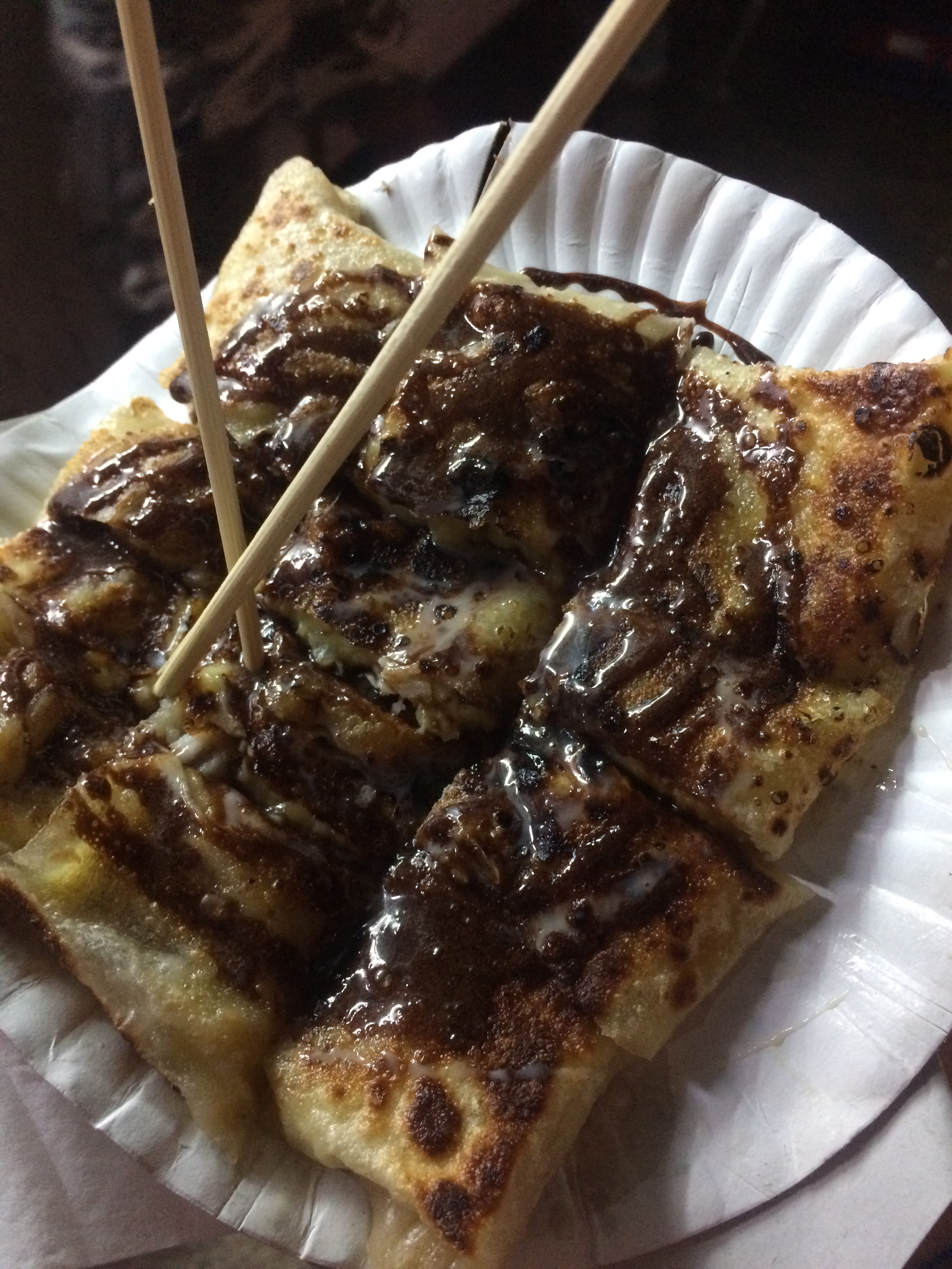 We also wandered to the main part of Sairee Beach (town area) to grab a snack. I got a banana coconut chocolate Thai pancake! The man running the stand was a funny guy, and made a delicious Thai pancake.