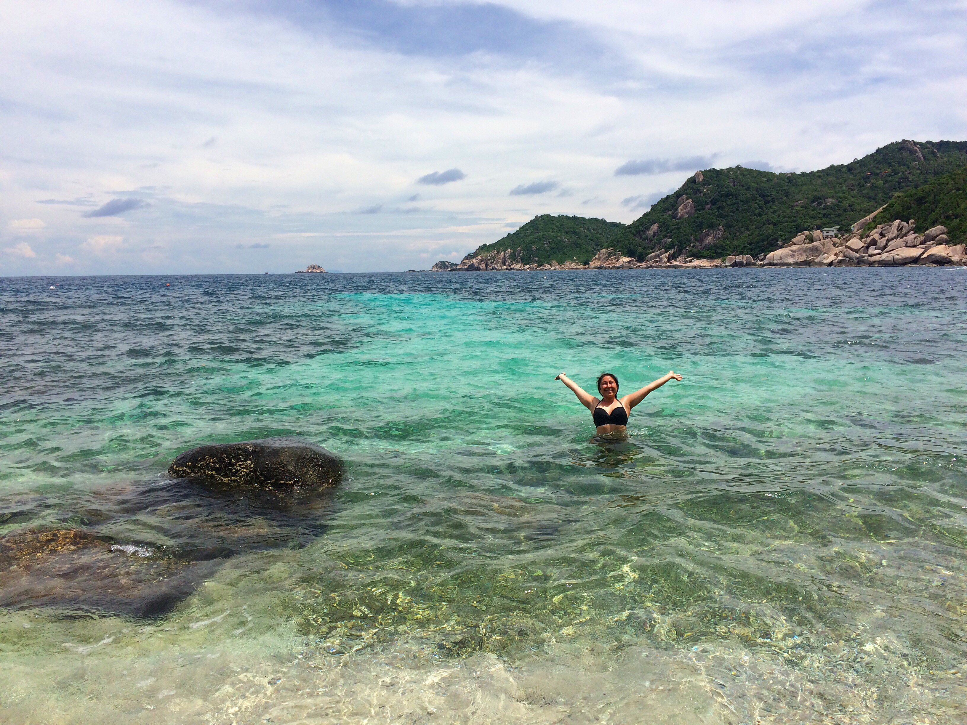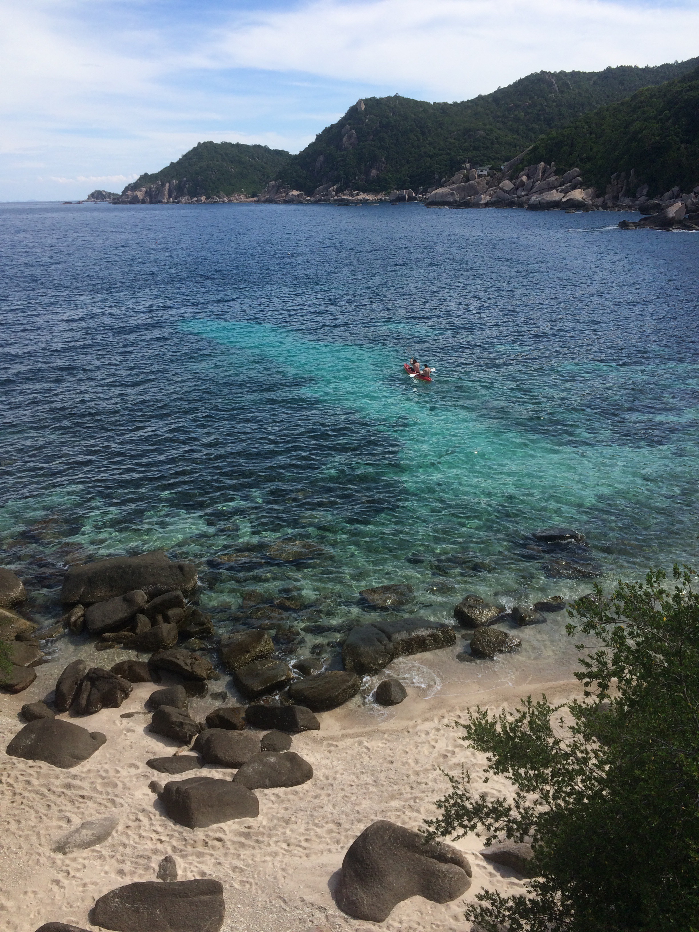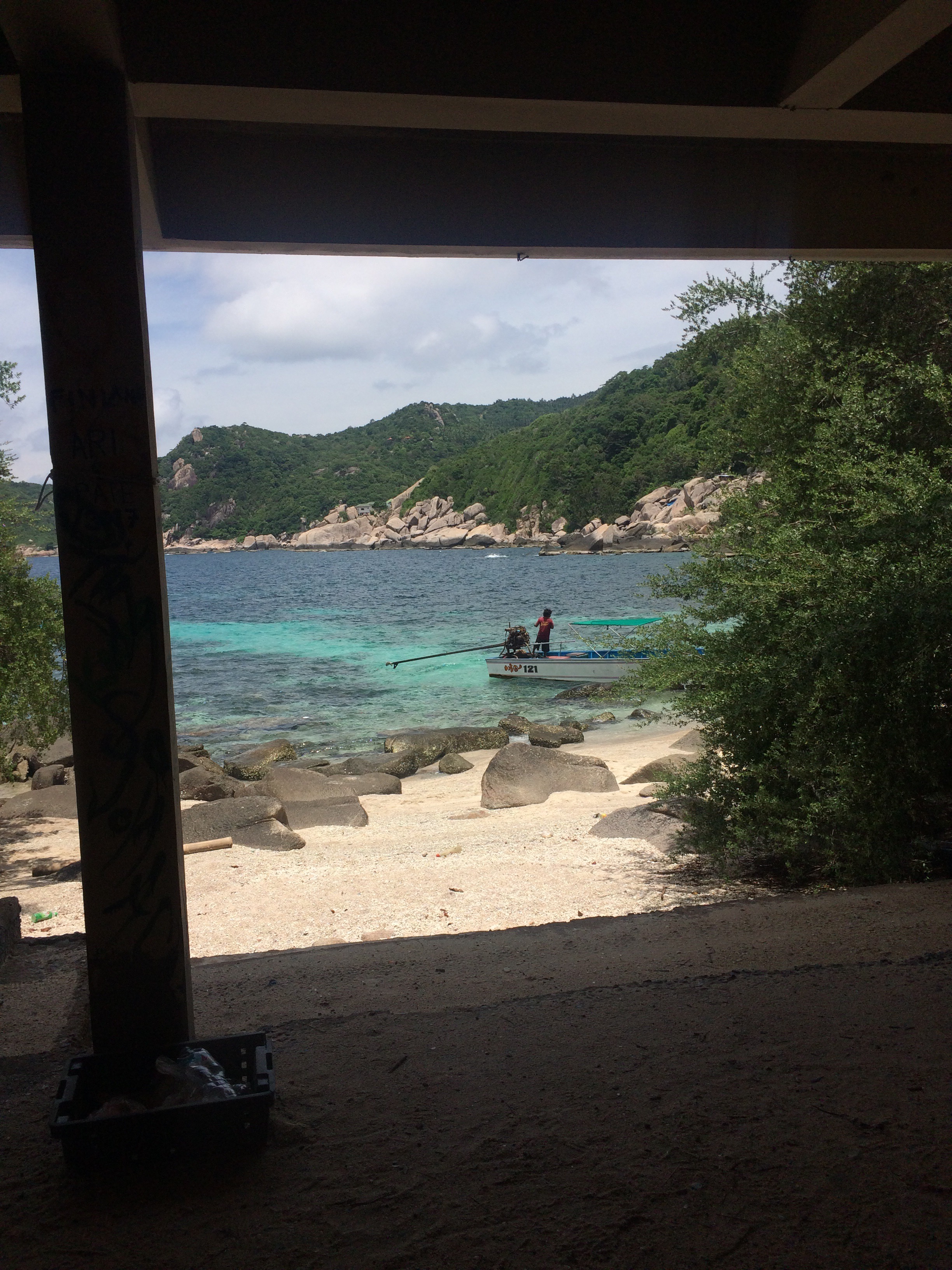 The day before my scuba course some friends from my hostel and I went on a hiking adventure! I was switching hostels to where my dive course is but I have to say Asia has been more than accommodating with early check in – twice now I have checked into a hostel at 9 am! My 2 friends and I hiked to Laem Thian, a deserted beach on the other side of the island. The hike itself wasn’t bad – seeing as any sort of movement promotes heavy sweating, the constant exercise just felt like an extended hot yoga class. The terrain wasn’t too bad either, as I hiked the entire thing in flip flops. It was mostly uphill to a peak and then downhill all the way to the beach.
