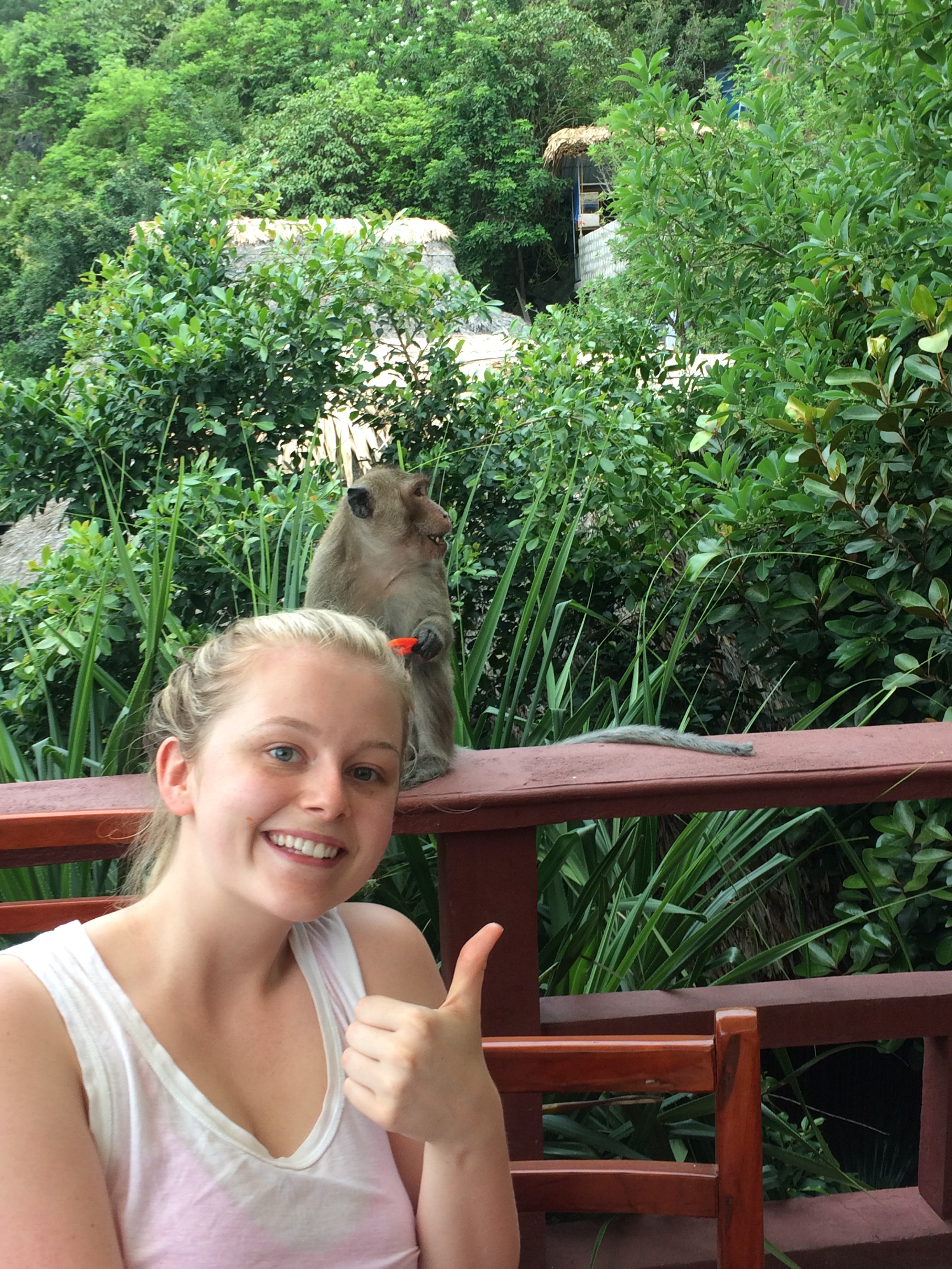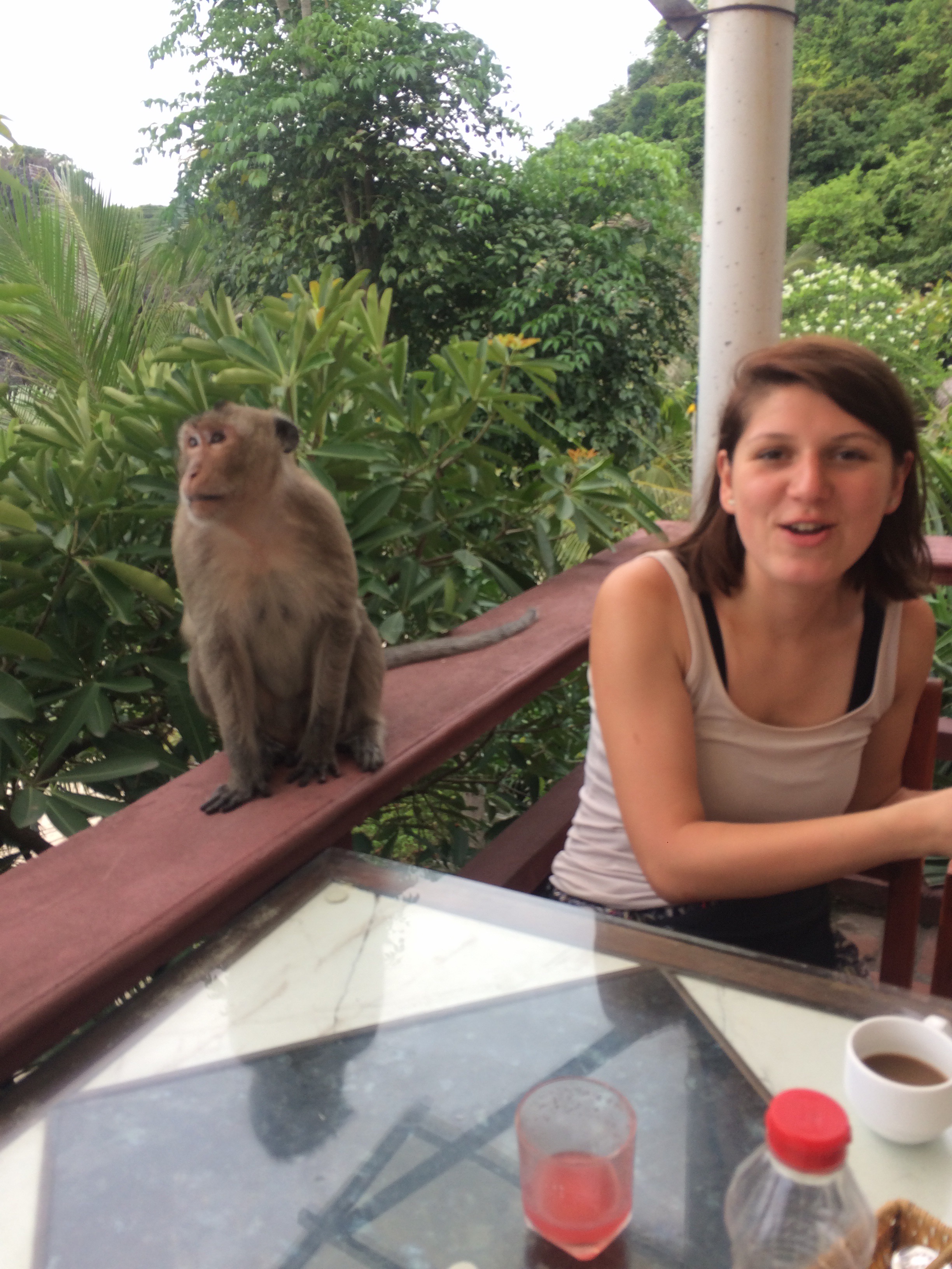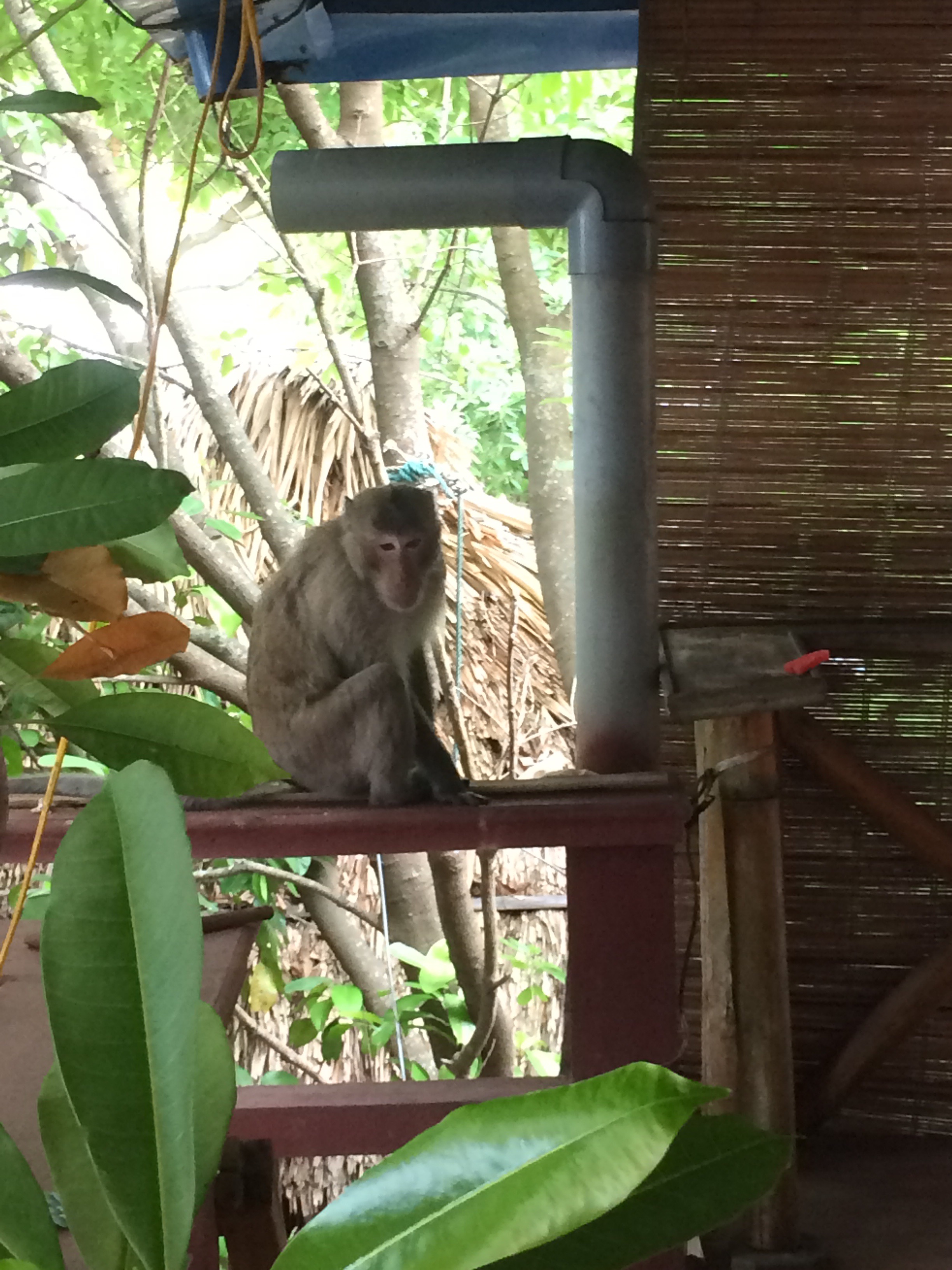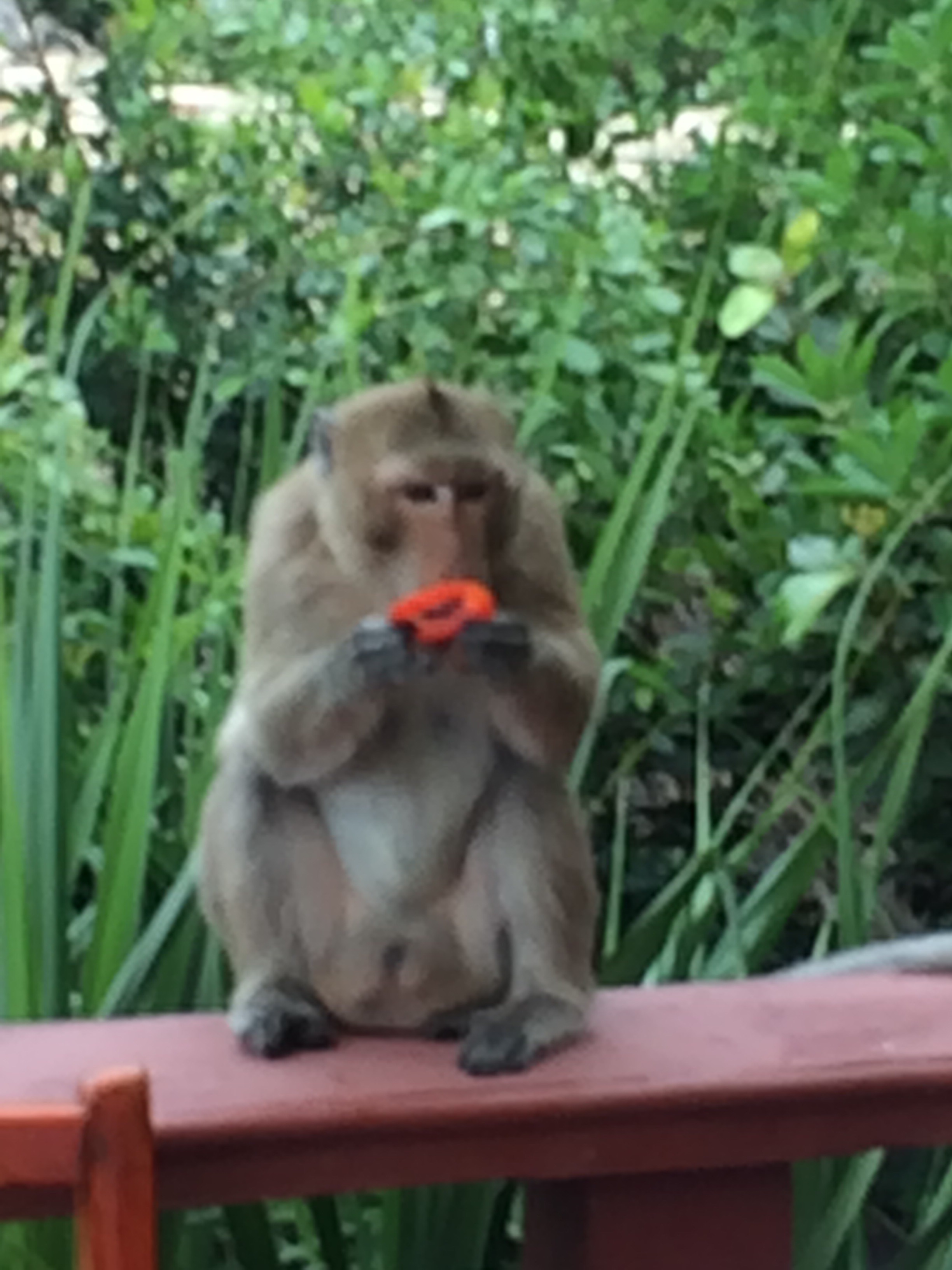 The next morning (this morning) at breakfast we had a special visitor! A monkey came in and stole one of our friends’ Oreos. It then hung around for a while because the staff were feeding it which I didn’t agree with but there wasn’t much we could do. Funny thing about the monkey was that it only ate the creme in the middle of the Oreo, just like someone else I know…..