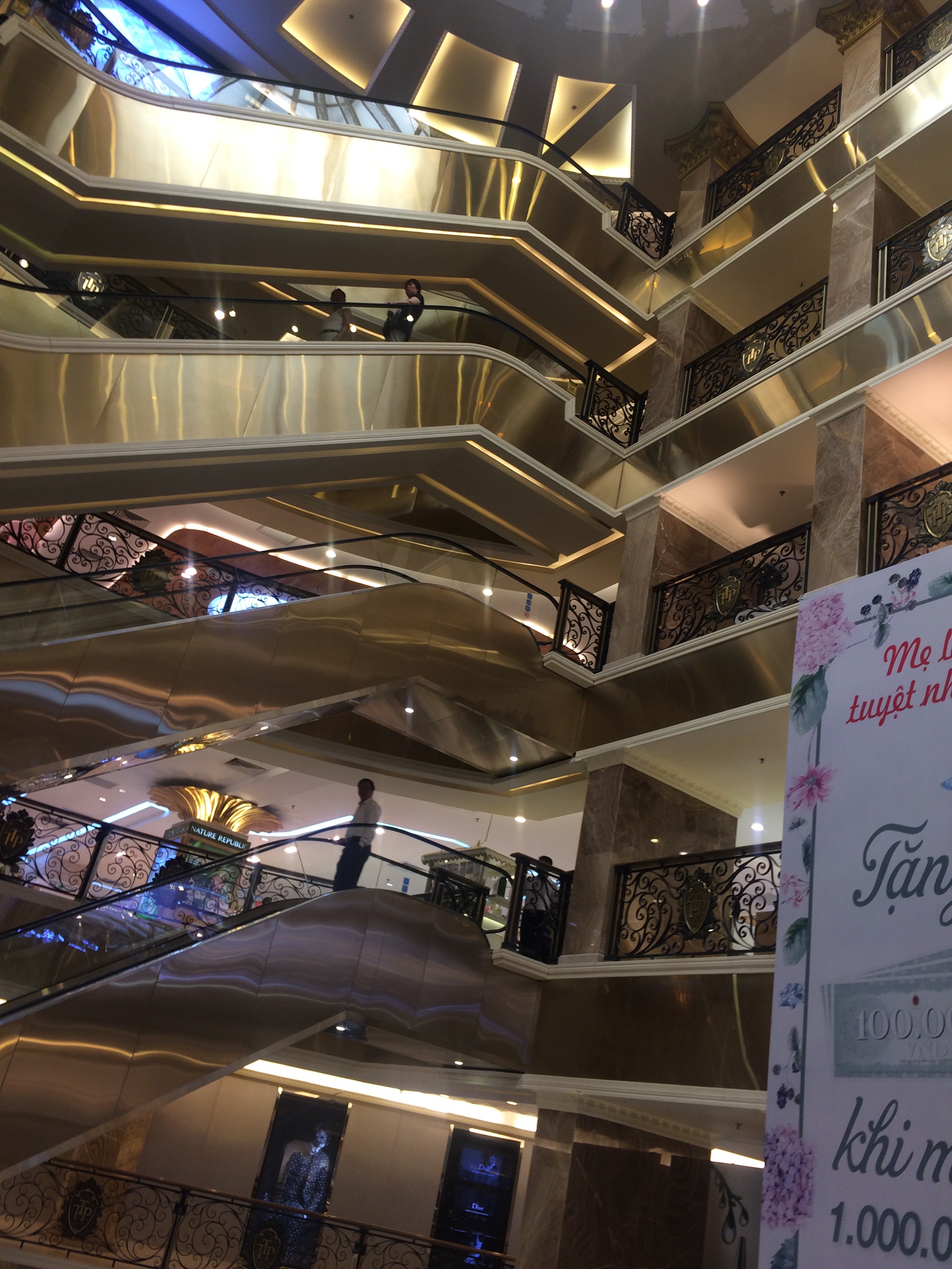 After our walking tour, we wandered around some more. We were oveheating and sweating as usual and desperate for some air conditioning, so we stumbled into the luxury mall in downtown Hanoi. It was beautiful! 6 floors, gold escalators and every luxury brand you can think of. We loitered until we were freezing from the air conditioning.