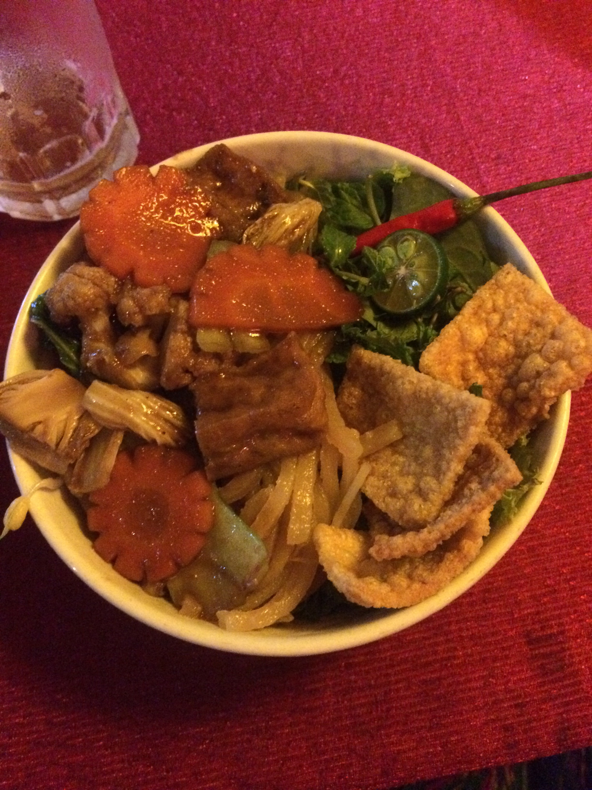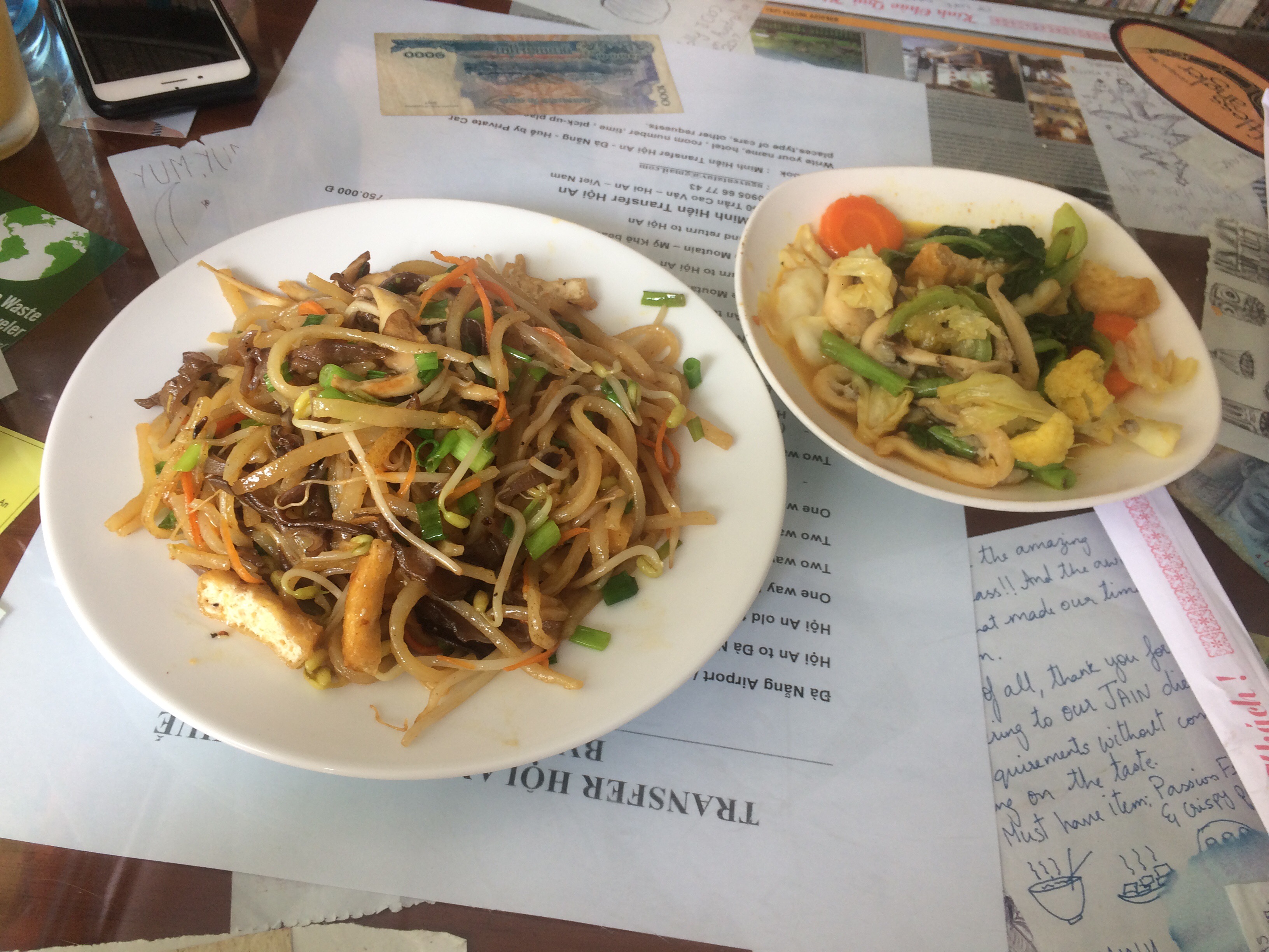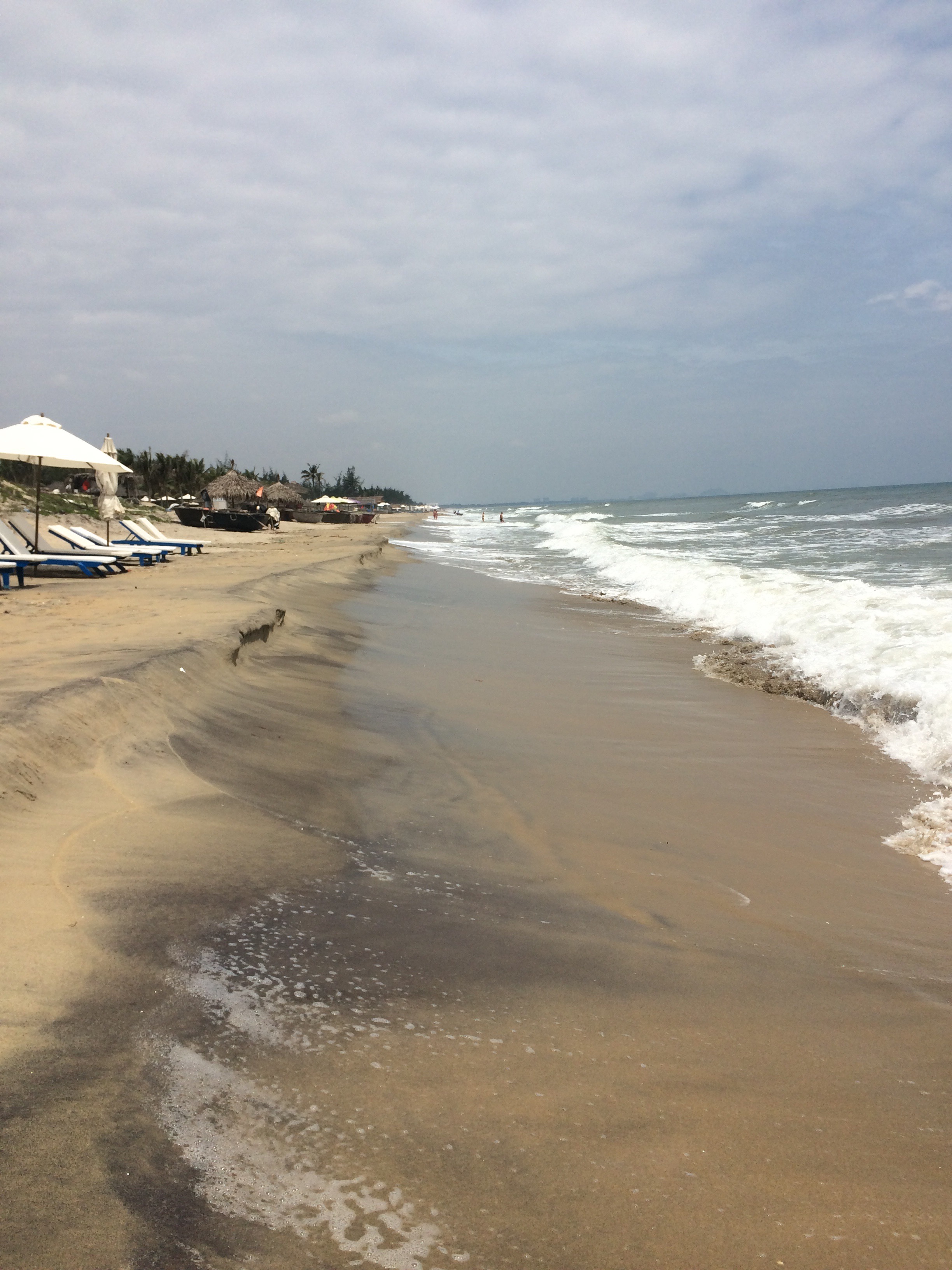 The next day we headed to the beach. It wasn’t exactly beach weather but we were excited to be there, so we got bicycles from our hostel (for free! Such a nice perk) and headed to Hidden Beach. It was great – fine sand, big waves and very quiet. No one hassling us like on other beaches I have been to in other parts of the world. We packed up around lunch time before it started to rain then biked to town for lunch and coconut coffee! We had lunch at Minh Hien which was recommended by a friend, where we enjoyed a veggie curry and local specialty, Cao Lao noodles: