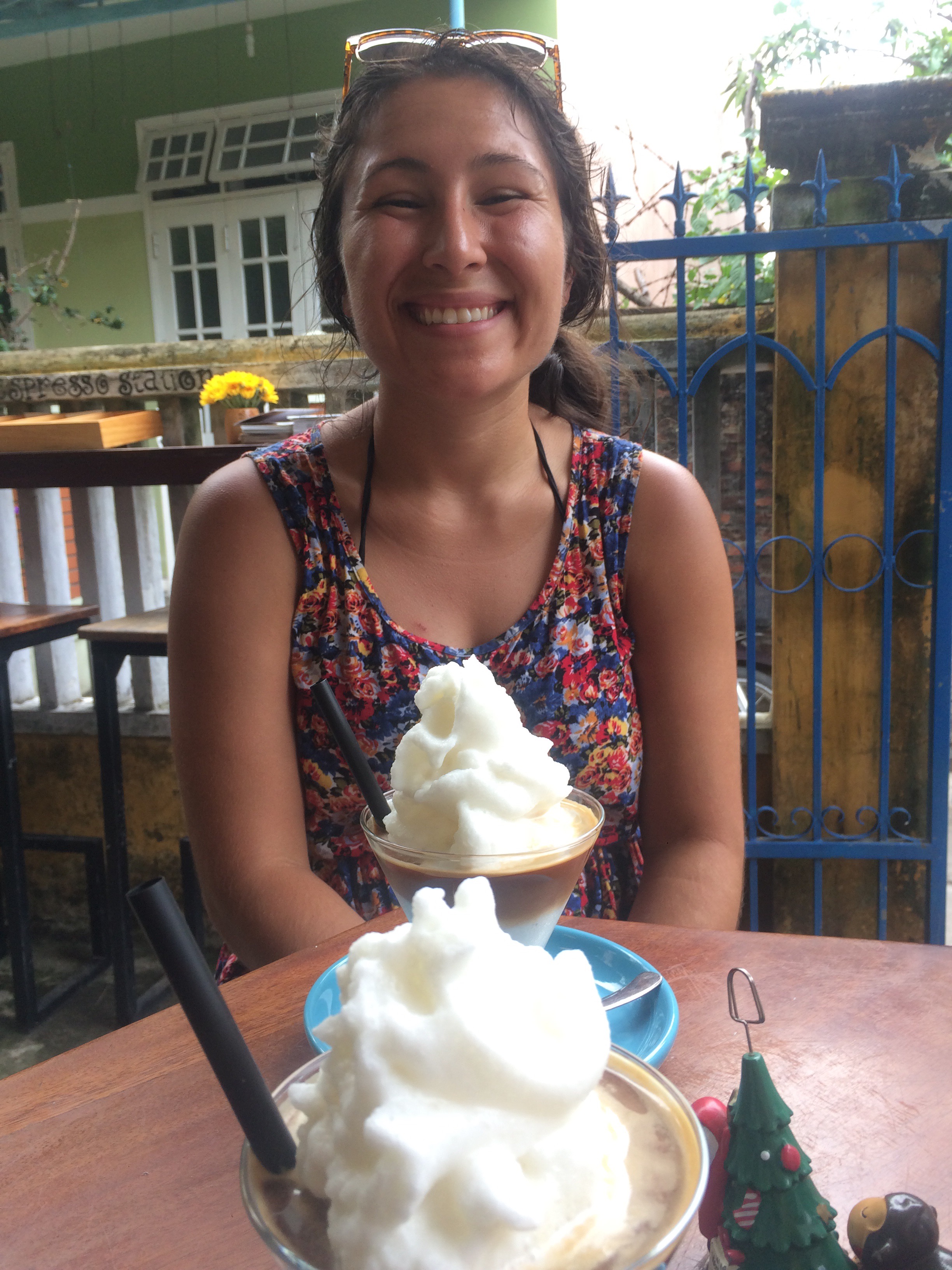 After lunch: more coconut coffee. We went to this cute cafe called Passion Fruit coffee and loved it. Best coconut coffee in Hoi An!