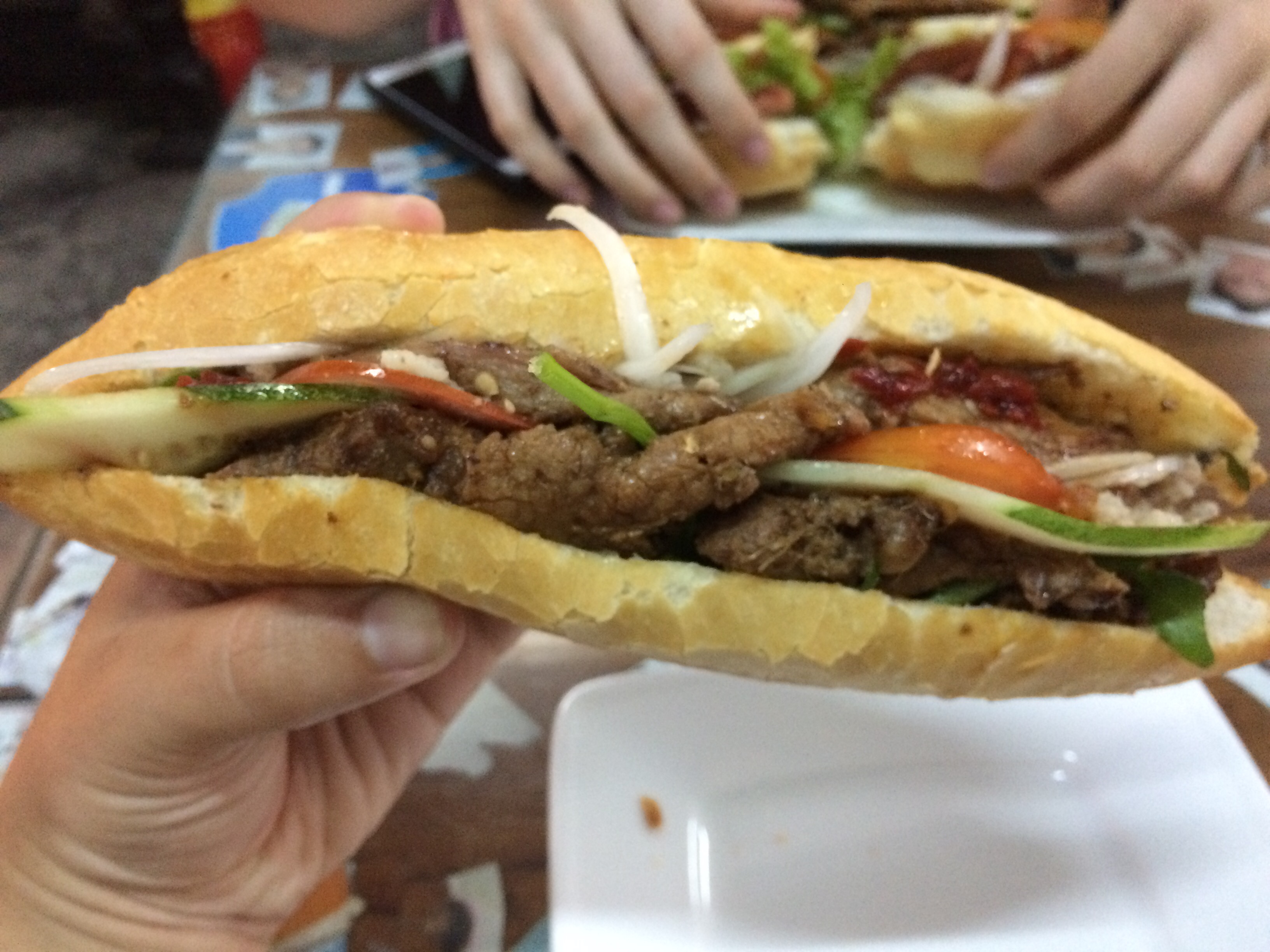 The next day we headed to the beach again! The sun was out a bit more today and we got some visible sun (me tanned and Makayla burnt). We biked to hidden beach again and spent the morning there, only leaving to have lunch at the best Banh Mi (Vietnamese sandwich on baguette) restaurant in Vietnam, Banh My Phuong. I had a pork Banh Mi and split a “barbecue” sandwich with Makayla, though I still don’t know what barbecue is.