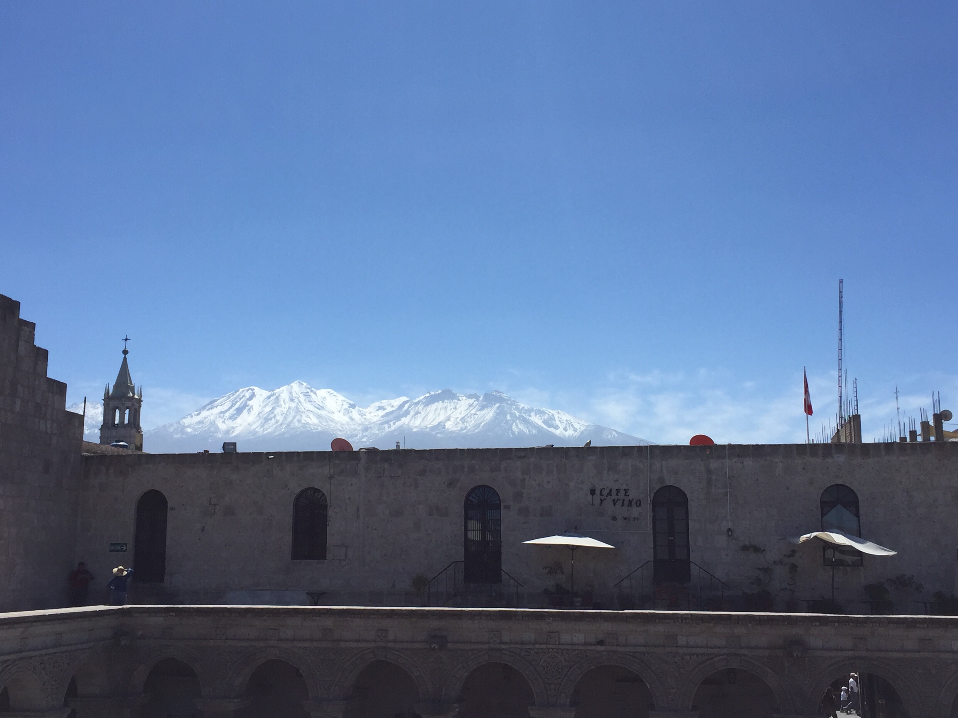 The next day Kristy was still sick so I went on a free walking tour of the city. One interesting thing I’ve noticed about Peru so far is that we have met very few Canadians! I was the only one on my walking tour. We walked some beautiful old streets, learned about Arequipa’s history, and caught a great glimpse of the mountains.