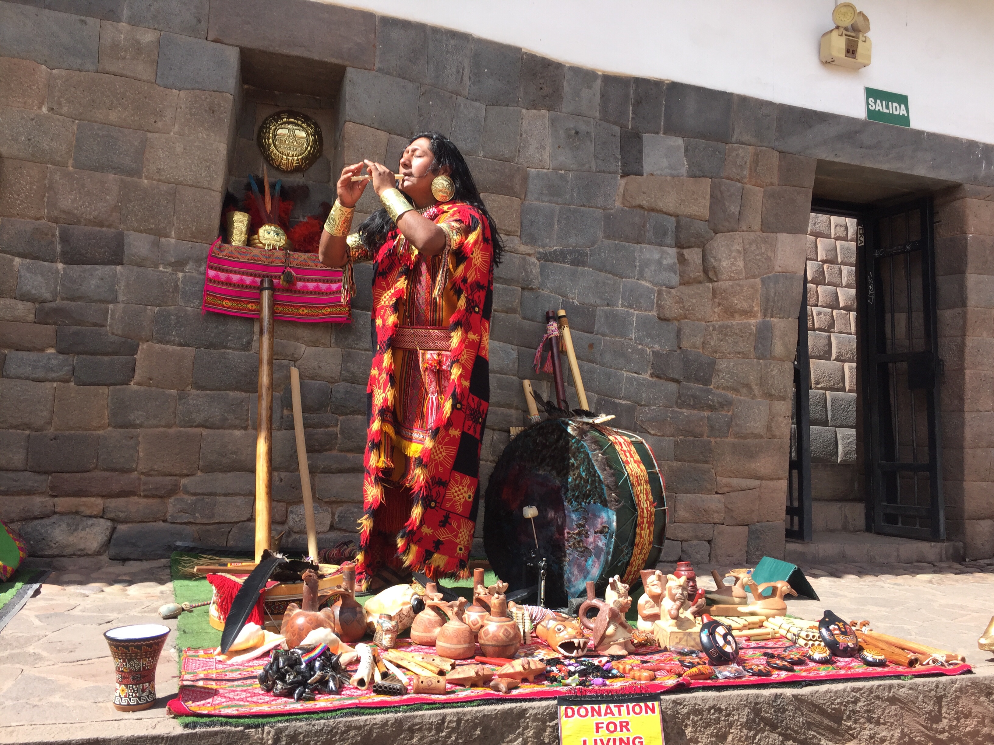 The next day Kristy and I went on a walking tour that was suggested by our hostel. It was awesome – our group was really small and our guide was very informative. He took us into this square where we watched a man perform a traditional song with about 10 different instruments, and we had a Pisco Sour sample at the top of this awesome rooftop patio! Obviously it’s part of the network with this walking tour company but it was still great – the worst part was the stairs up to this rooftop place, with the altitude our breathing was quite heavy.