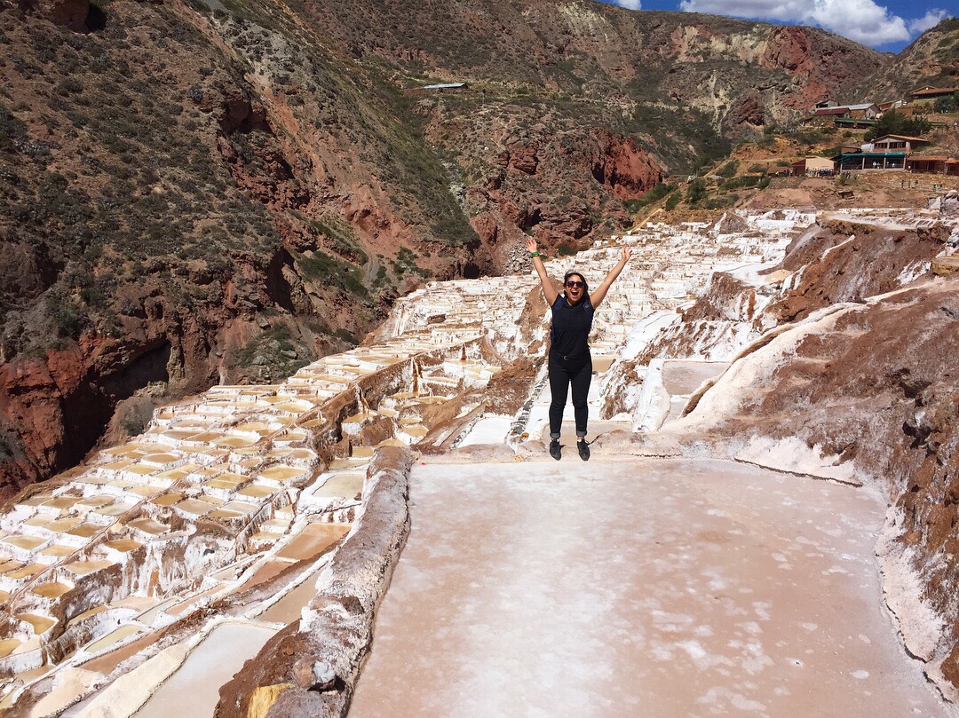 After Moray, the driver took us to the Salt Mines! They are about another 30 minute drive from Moray in the other direction of the bus junction so we buckled in. There’s a really adorable community vibe that goes on in Peru where random people who need a ride just hop in with tourists in their taxis to get where they need to be if it’s on the way! It’s all part of the fun.