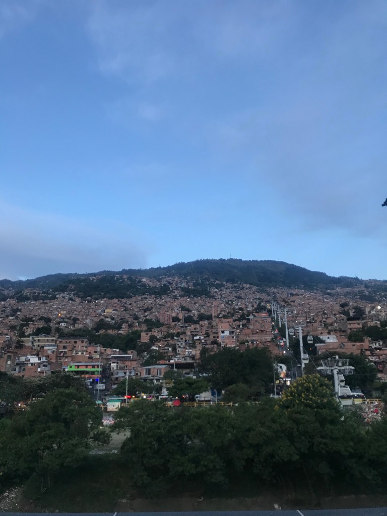 After returning from my errands and walk, I decided to join a group of people from the hostel in taking the train and gondola to Arvi Park. Medellín is a unique city in that their public transport system is comprised of a remarkably clean and efficient metro, a tram system, and gondolas that aid people living in the hills up to their homes. We were able to get ourselves almost to the top of the gondola line but didn’t make it in time to get to Arvi park before the special gondola closed at 6. While that was disappointing, we were able to catch some amazing views on our way down the gondola.