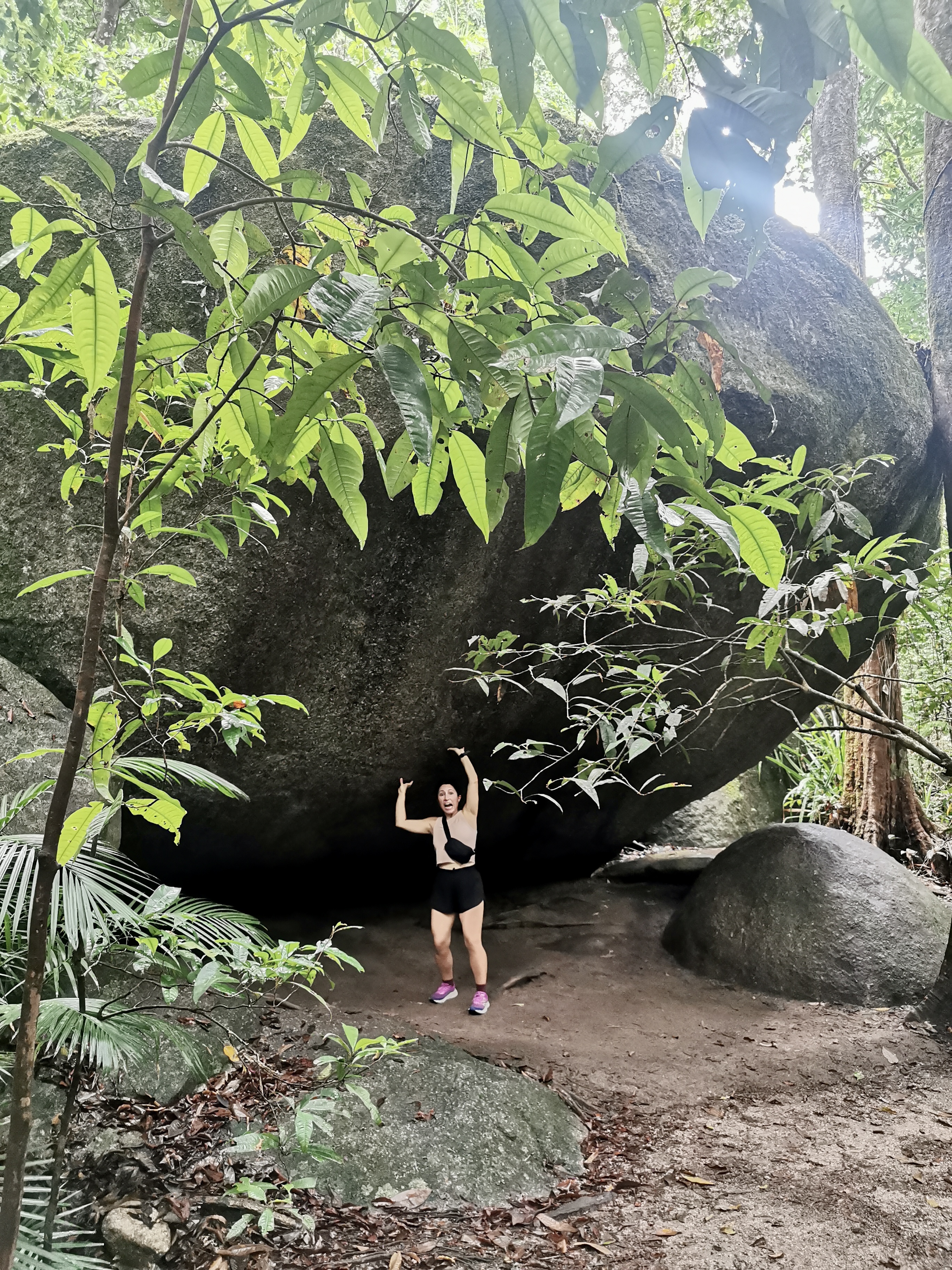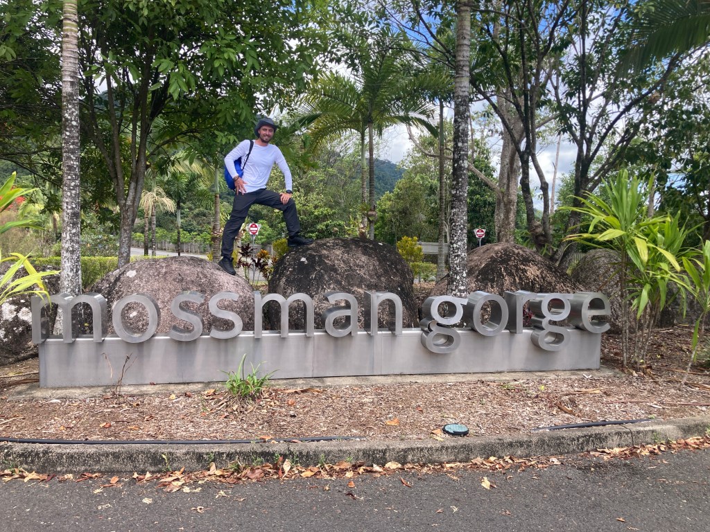 The day after the boat trip, we went for a drive out to Mossman Gorge and Port Douglas. There was so much to do and see in the Cairns area, so we tried to pick the activities that we thought would get us out into nature. Mossman Gorge wasn’t originally on our list, though once George learned about it he was very keen to visit since the place basically shared the same name as him. The Gorge had a great visitor centre, and after buying a ticket, a bus took us to the start of a trailhead. We continued on the trail for a walk through the rainforest, which was beautiful, and then George went for a dip in the swimming hole on our way back. The gorge is particularly special to locals and visitors because it is one of the few swimming areas that is safe from both crocodiles and jellyfish.