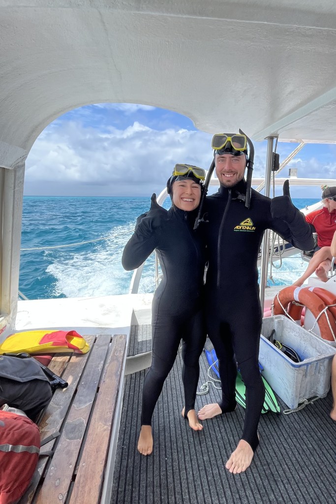 On our second day in Cairns, we boarded a catamaran that took us out to the Great Barrier Reef. We were all really excited for this boat trip, and to see the reef and marine life. After a couple of hours’ boat ride, we put on our stinger suits and enjoyed a morning snorkel on the reef, loving the many different fish and other sea life that we were able to see. While the trip we had signed up for was for for snorkelling, an opportunity presented itself for me to scuba dive with the guide during the afternoon snorkeling session, so I took it! I was quite nervous as I hadn’t been diving since I got my PADI Open Water certification in Thailand in 2017, but the guide was super helpful and patient with me and reviewed some skills before we descended to the reef. I was absolutely blown away by the dive, seeing many colourful fish, a turtle, and about a dozen reef sharks. It was an awesome boat trip and was wonderful to finally check the Great Barrier Reef off of my bucket list.