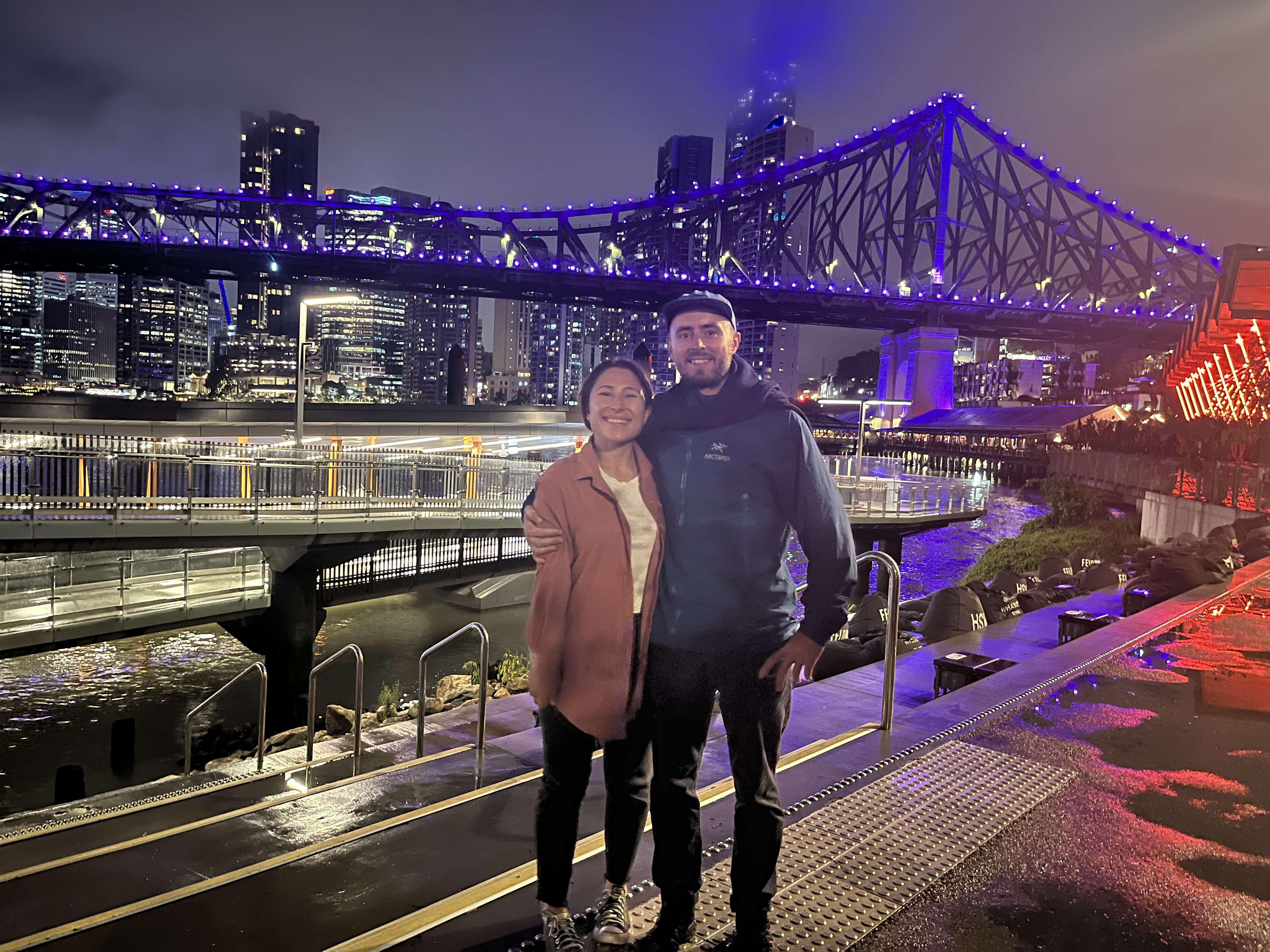 We landed in Brisbane in the early evening to the biggest rainstorm that we had experienced since arriving in Australia. We were staying in the city for the night before George’s mom caught her flight back to England the next morning. We walked along the water and enjoyed the beauty of the city lights before having a final meal with George’s mom at a restaurant on the waterfront.