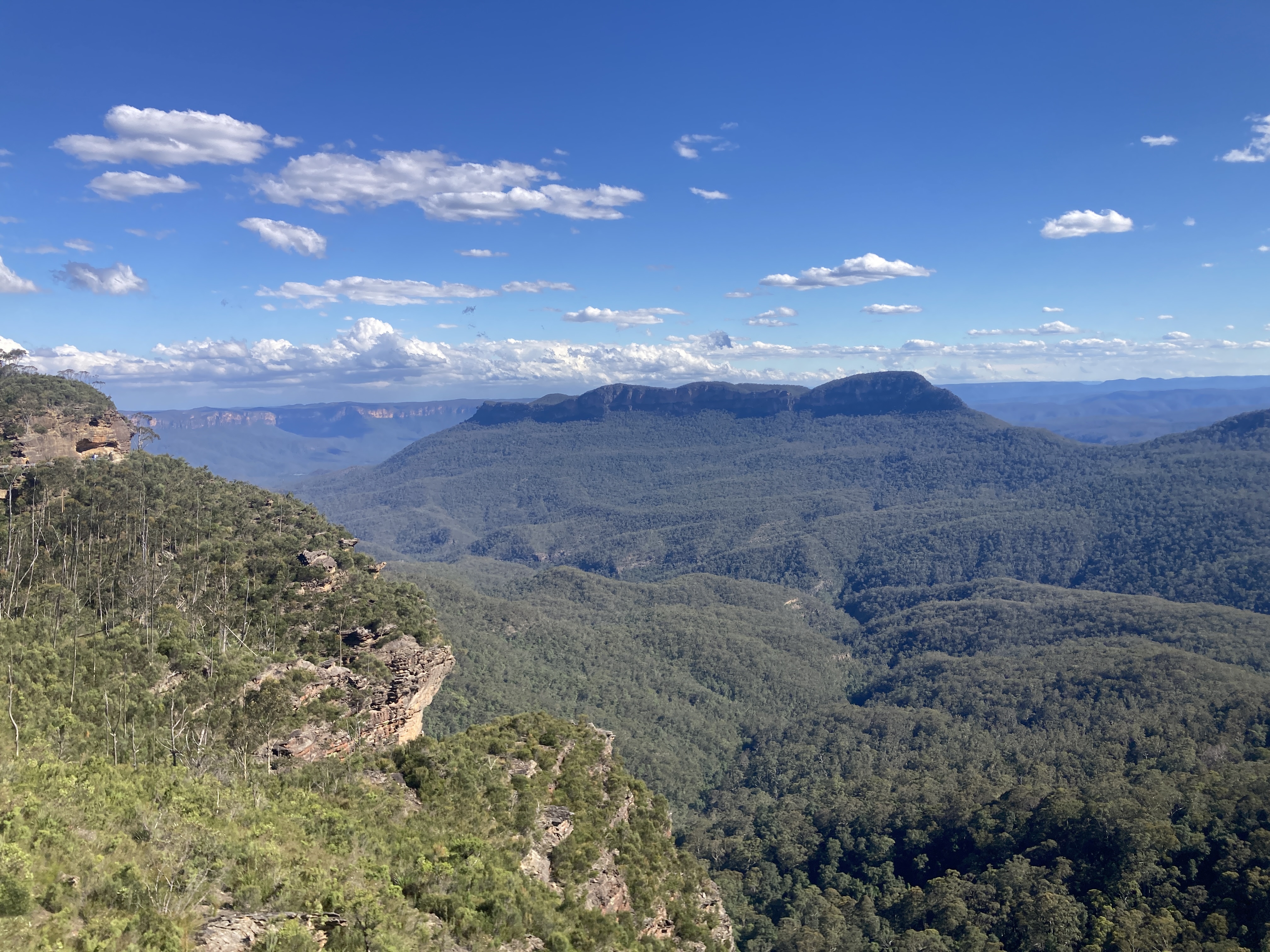 We were happy to arrive at our conveniently located campsite, which was across the road from walking paths leading to some beautiful viewpoints in the area called Katoomba. These viewpoints included Katoomba Falls, as well as beautiful views of the mountains and valleys around it. The scenery reminded me of the Grand Canyon, except instead of exposed rock, most of the landscape was covered with thick dense trees and other vegetation.
