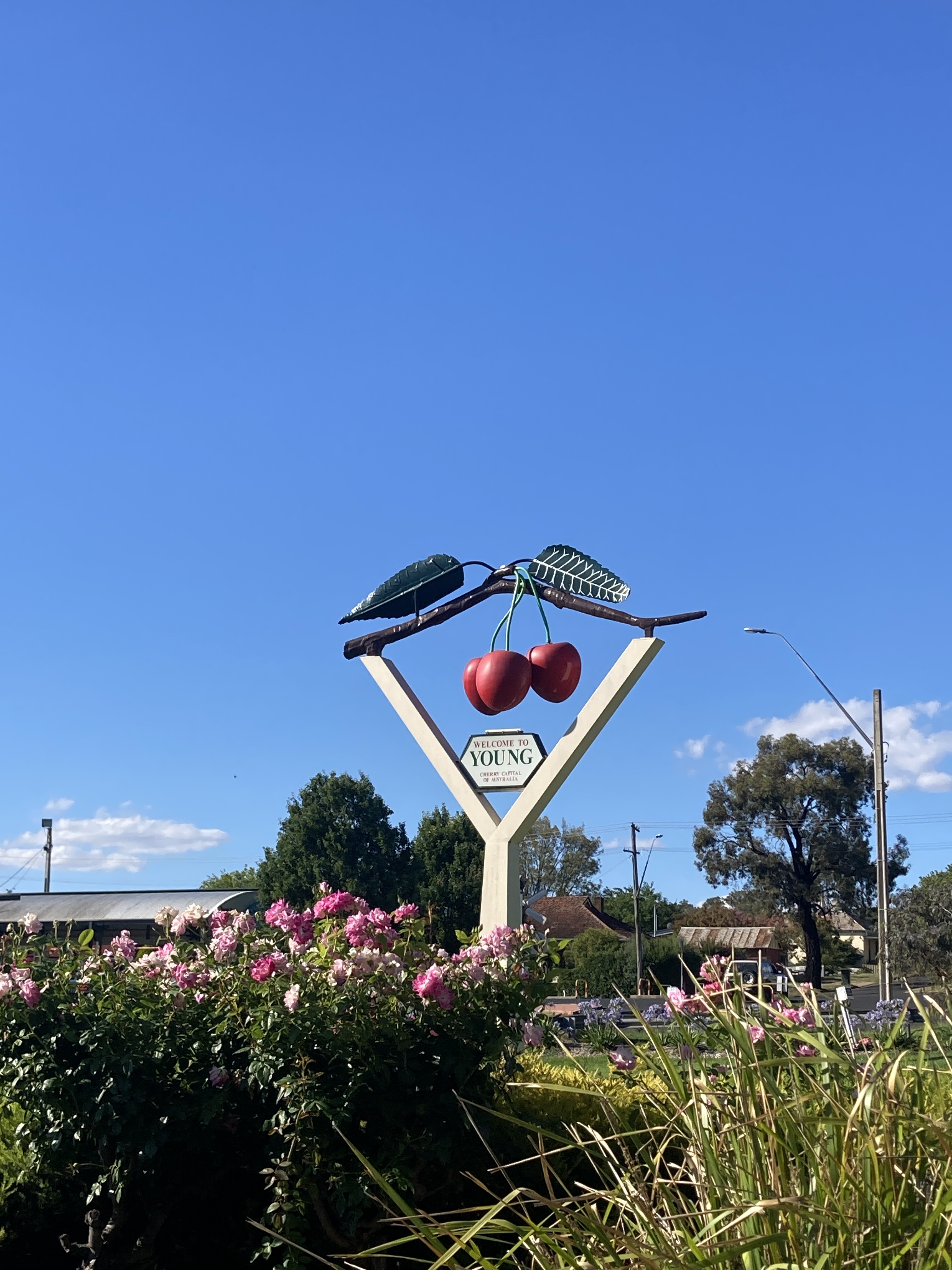 The location we found after some strategic research on Google Maps, a town called Young in Central New South Wales, was about halfway to our day 3 destination. This impromptu stop ended up working in our favor as it helped break up the next day’s drive, and we were greeted with some absolutely beautiful weather. After setting up camp, we explored the town, which didn’t have a ton going on but did appear to have quite a history. A fun fact is that Young is the cherry capital of Australia! We decided that we couldn’t complete our visit without having cherries in some respect, so we bought a cherry pie from a local farm stand – it was delicious.
