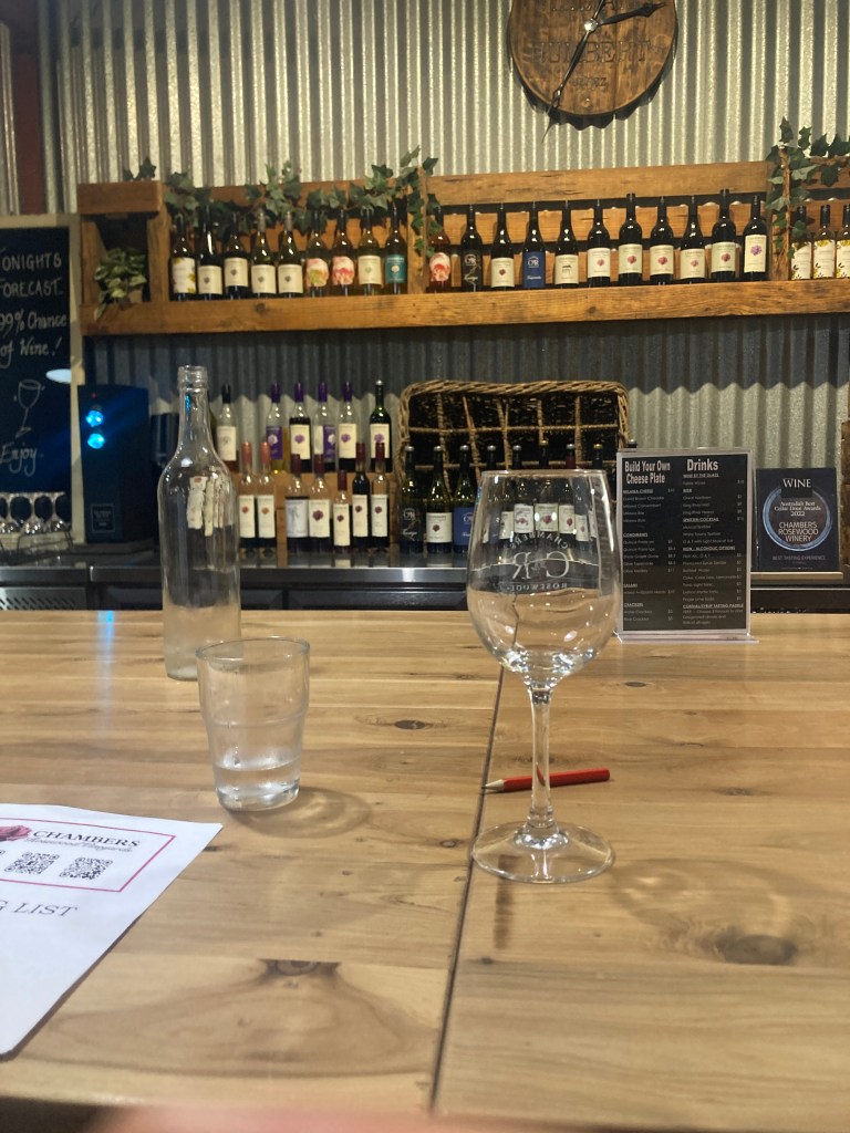 Our driving on day 3 of the trip took us to the town of Rutherglen, which is across the New South Wales border in Victoria, located in one of the many wine regions of the state. George had found some wineries that we could visit that were within walking distance of our campsite, and we were excited to visit our first Australian vineyards. The first winery we visited was called Chambers Rosewood, and it was a smaller family-owned operation. We were greeted at the tasting room (called “cellar door” in Australia) by a talking cockatoo that apparently was rescued from an unfortunate living situation, which was an unexpected surprise.