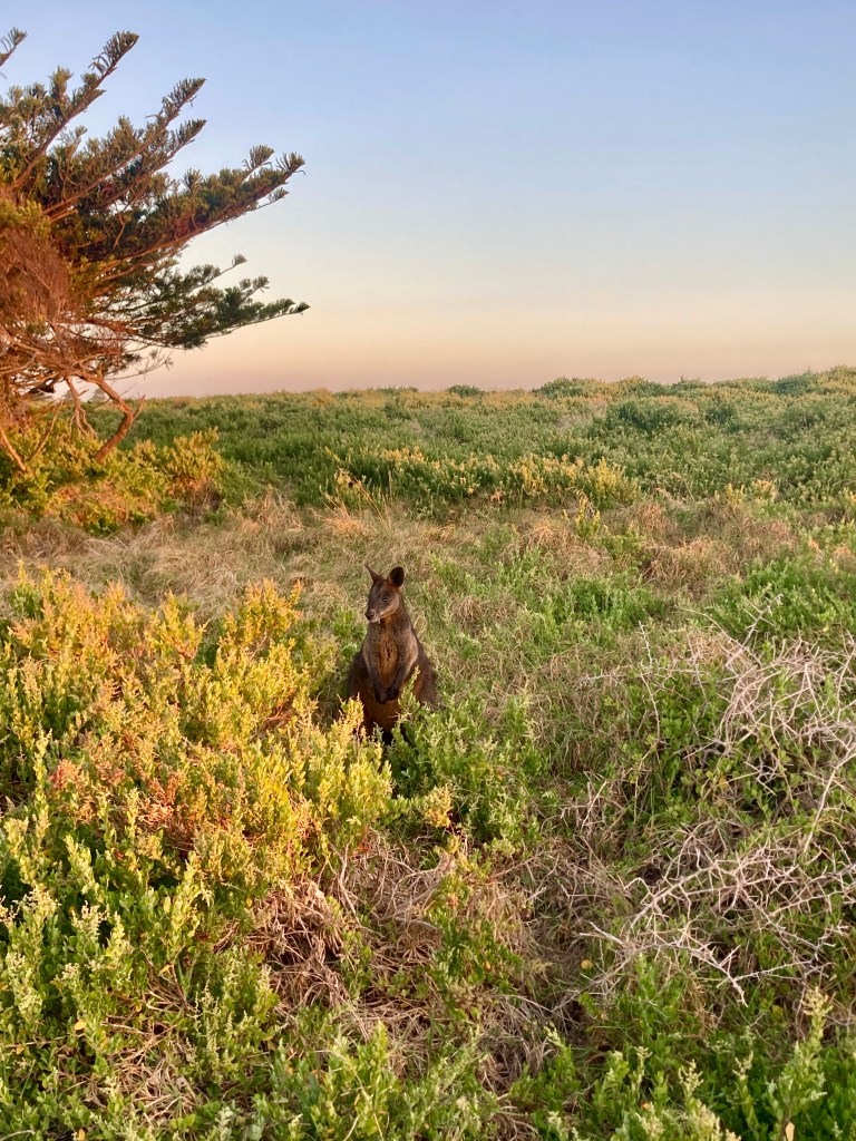 One of the sights we were told to see in Port Fairy was the mutton birds coming in to their nests on Griffiths Island at dusk. We made our way back to the waterfront to try and get a look when the sun was going down. It was a very windy evening, but the sunset was beautiful, and it was magical to see the island during sunset. We also had the bonus of seeing many swamp wallabies begin their evenings hopping around the island.