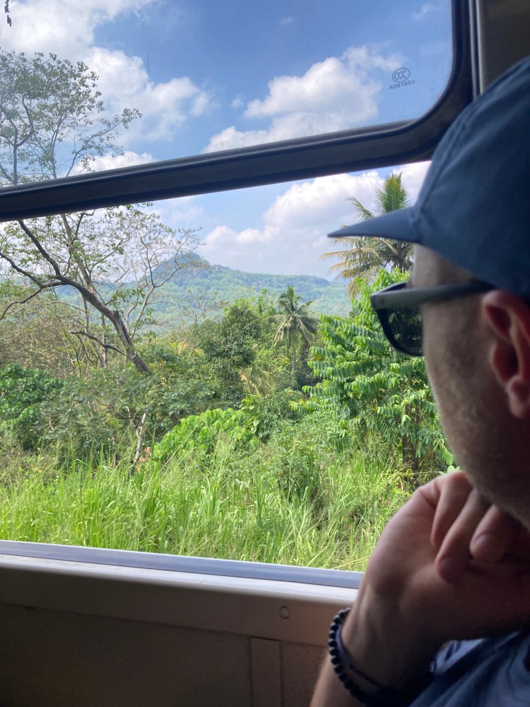 The next morning, we got on the train again and continued our journey to the town of Hatton, located two and a half hours away. We were lucky to get seats in the special observation car at the back of the train, and took in some amazing scenery as the train carried us through the many tea fields in the region.