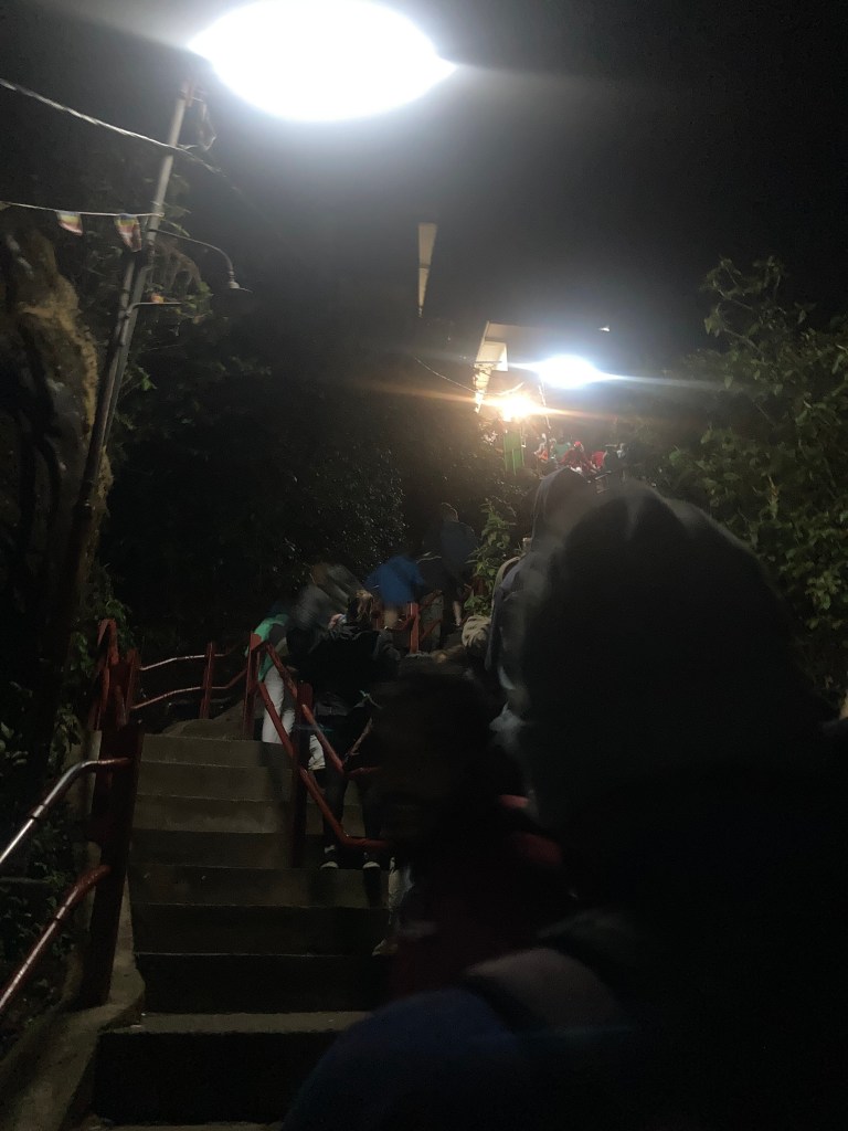 After our 2:00 am wake-up, we left our homestay around 2:30 am and began our climb up to the top of the mountain. We were immediately greeted with concrete steps that slowly wound their way up the mountain, increasing in steepness the higher we climbed.