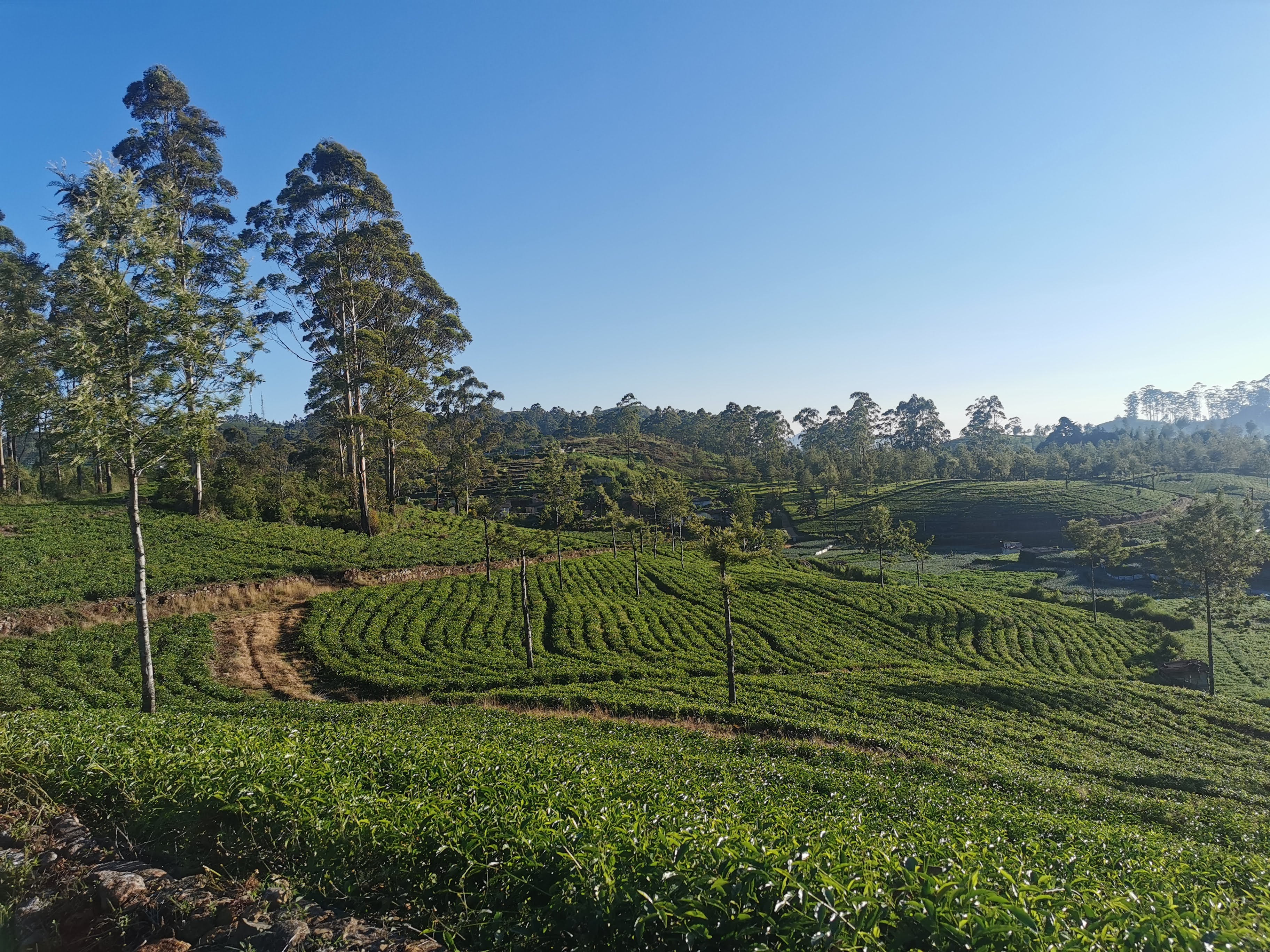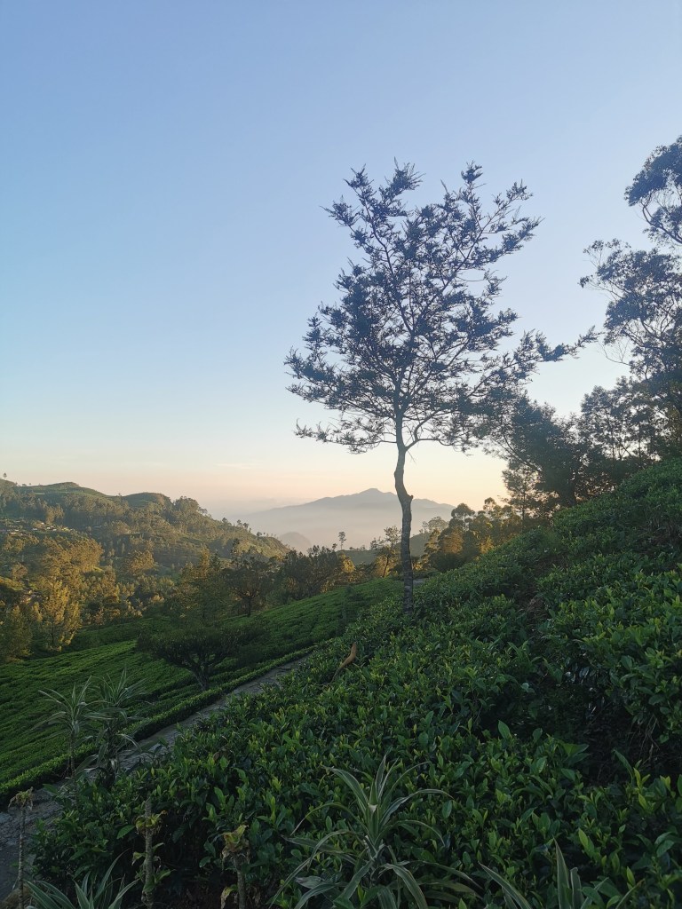After getting dropped off by our tuk-tuk, we spent some time at the viewpoint taking in the sunrise and the amazing scenery below. Then, we started to make our way down the hills, through and around the tea fields. It was a beautiful walk.