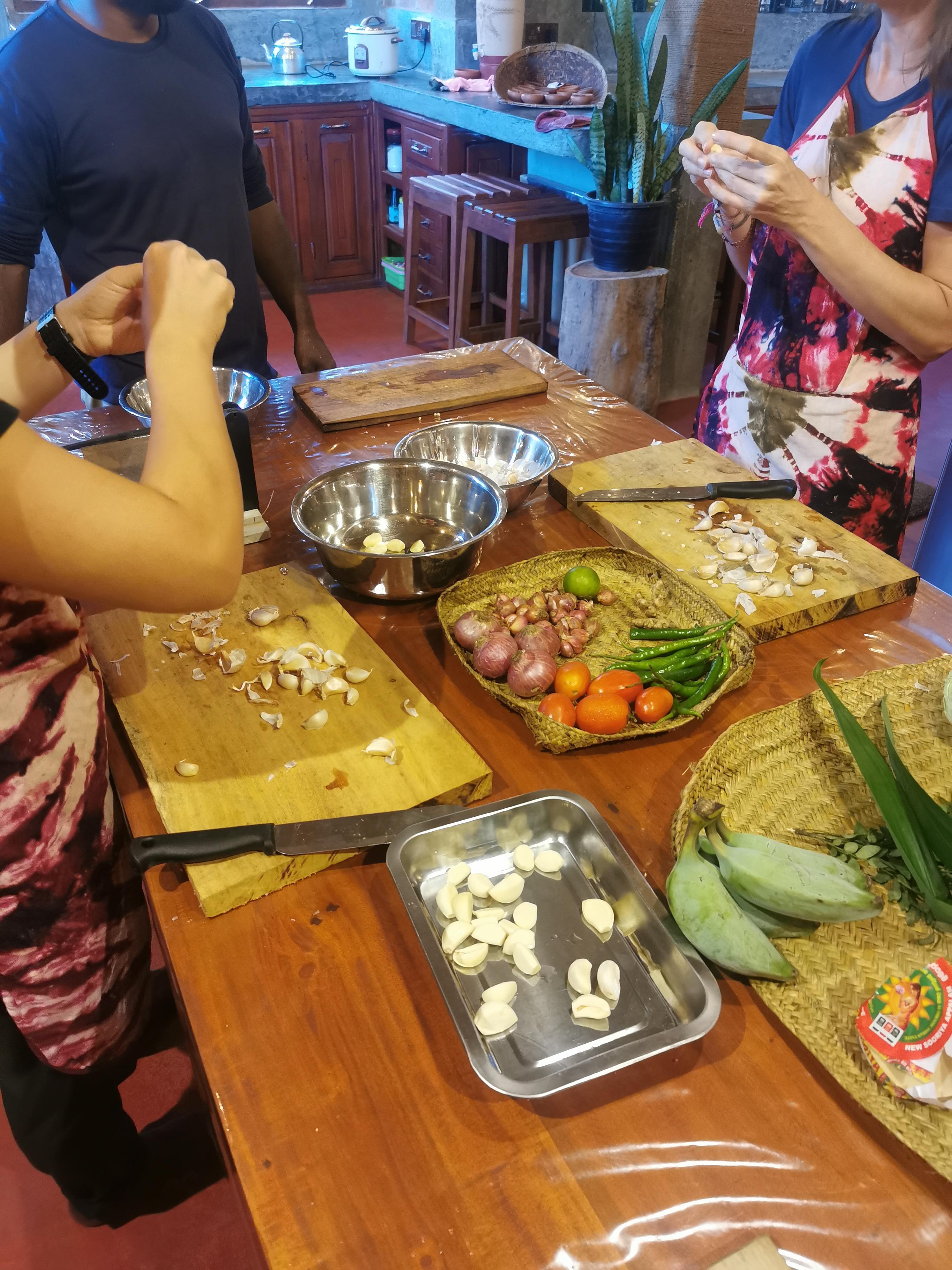 One of the reasons why we booked our specific homestay was because we had read about the amazing cooking class that you could book and take at the property. The homestay has a rotation of local women who live nearby and come to share their cooking skills with guests who sign up for the class that they organize. The class took place in a beautiful kitchen area located in a separate building to the property.