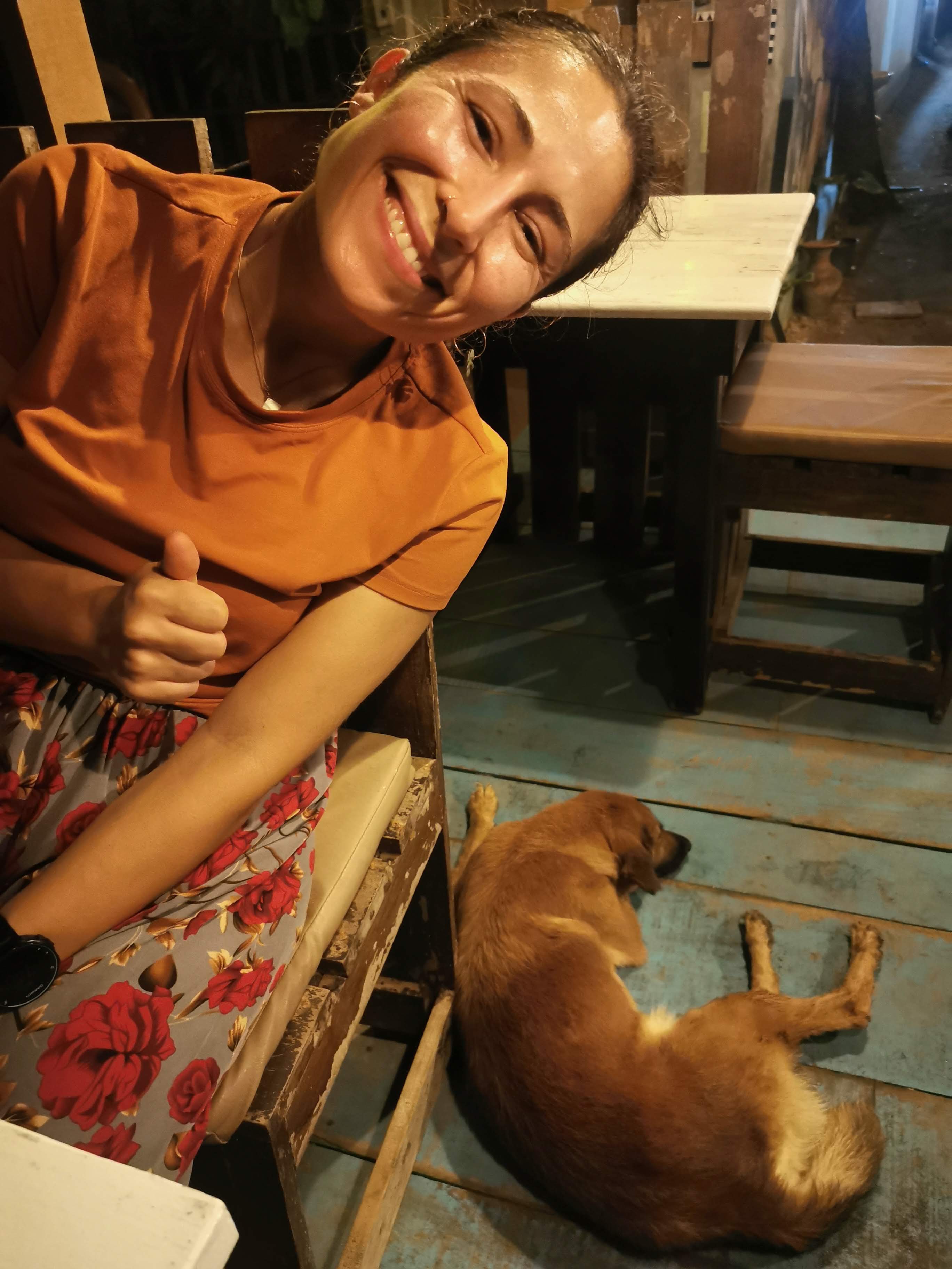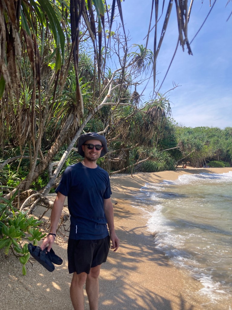 We spent our days in Mirissa walking around town, exploring the various shops, restaurants, and beachfronts, and enjoying our time while trying to stay cool in the extreme humidity. We also enjoyed the cute and friendly street dogs that were everywhere. During our travels, George discovered that a friend of a friend from home was also in Sri Lanka at the same time as us, so on our second night in Mirissa we met up with him and his partner so they could catch up and we could share travel stories.