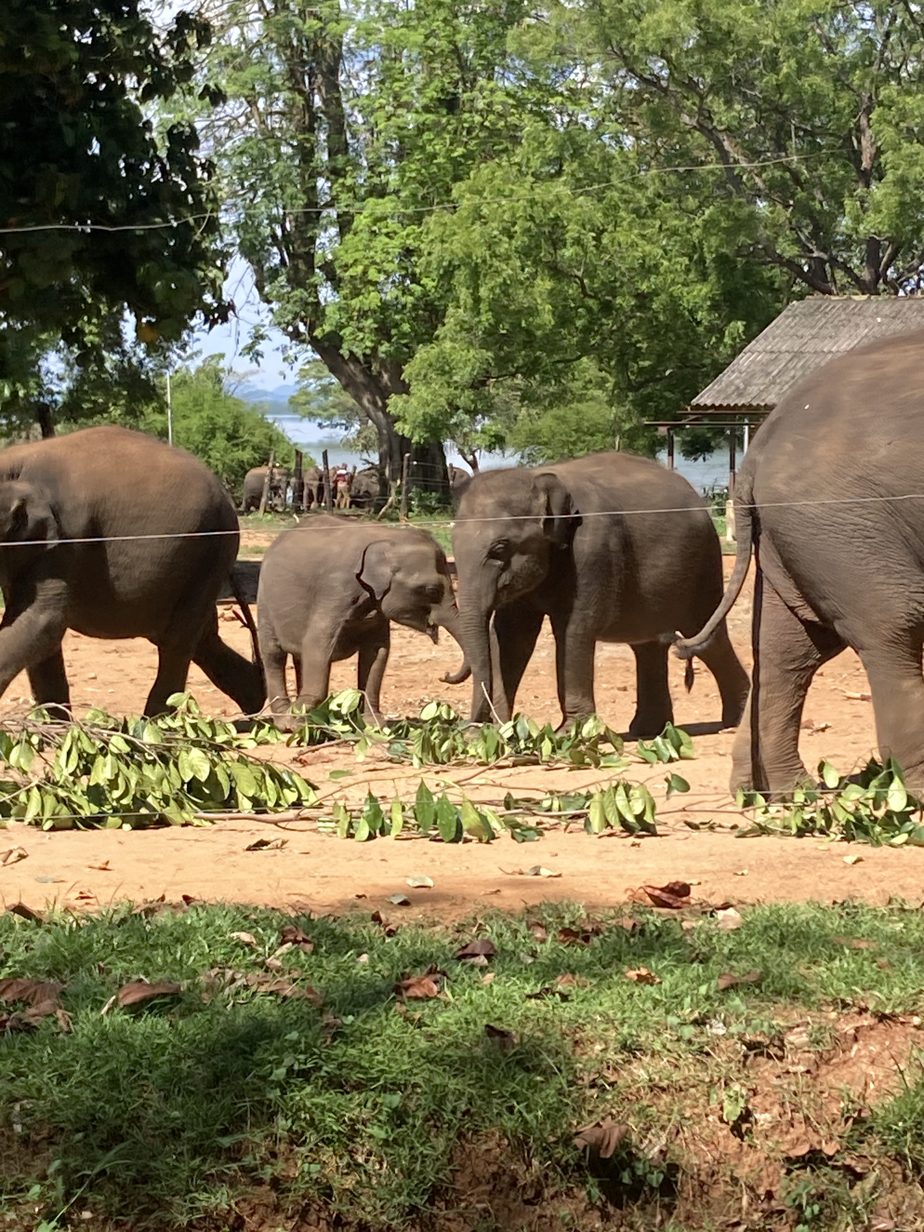 We were at the centre for the 2:30 pm feeding and were excited to see all the elephants start arriving and line up at the gate. We appreciated that the viewing area was quite far from the feeding site to keep the elephants (and humans) safe. Once the feeding started, the elephants were let in as small groups, where they received a portion of milk followed by access to tree branches filled with leaves. They were so cute to watch, with many excited little elephants running in to get their milk and some sneaky ones even trying to go back for seconds. The feeding lasted about half an hour in total, and we saw about 40 elephants during this time. It was incredible.
