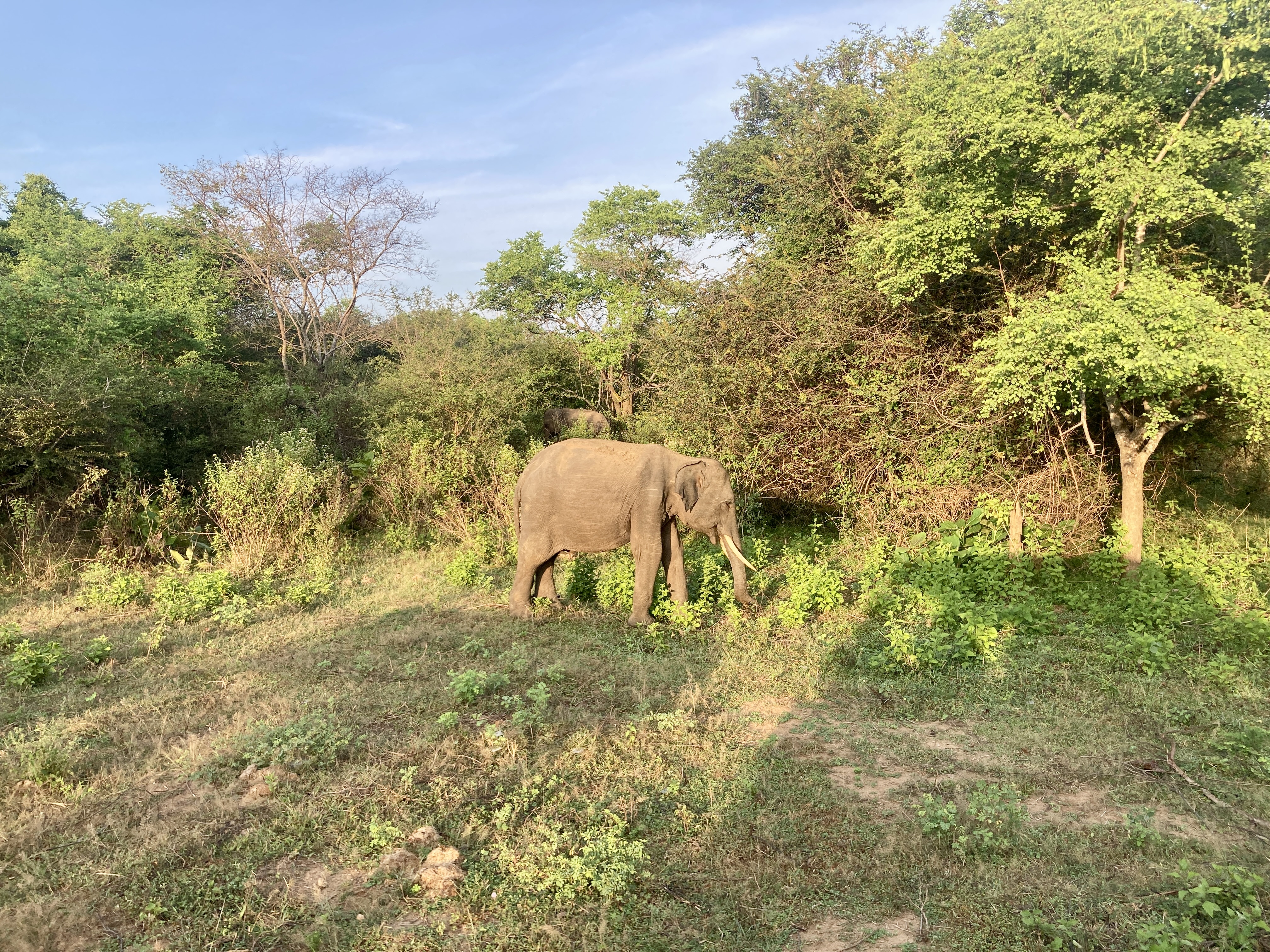 We saw about 15 elephants in total, with many of the sightings starting out with us spotting them feeding in the bushes and then happening to come out in the open so that we could see them better. Our best sighting was a group of 5 elephants that included a mom and baby, as well as a male with tusks, which is extremely rare and considered lucky to see in Sri Lanka. Besides elephants, we also saw many other interesting animals during our safari. Some highlights include many birds, water buffalo, deer, and lace monitors, to name a few.