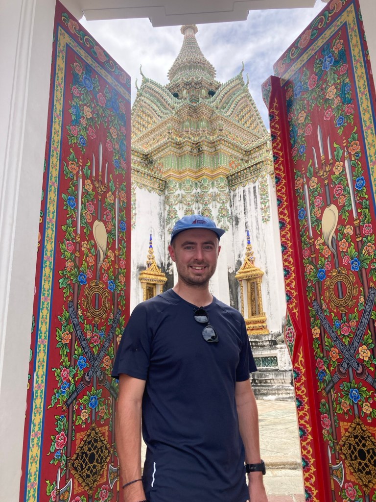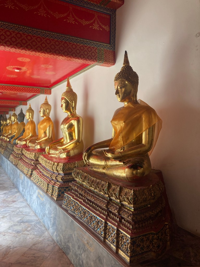 The next morning, we headed on foot to the area which held quite a few temples. Our first stop was the Grand Palace, but after seeing how many tourists and crowds were around, we opted to visit the less busy Wat Pho (Temple of the Reclining Buddha). This was a great fit for us as we were able to admire the architecture and colours of the temple without the thousands of tourists around us.