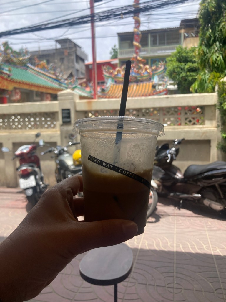 Our first stop was a trendy coffee shop George had found for me during his research called Song Wat Coffee Roasters. I ordered an iced coffee with orange syrup in it, which was a flavour profile I hadn’t tried before but really enjoyed.