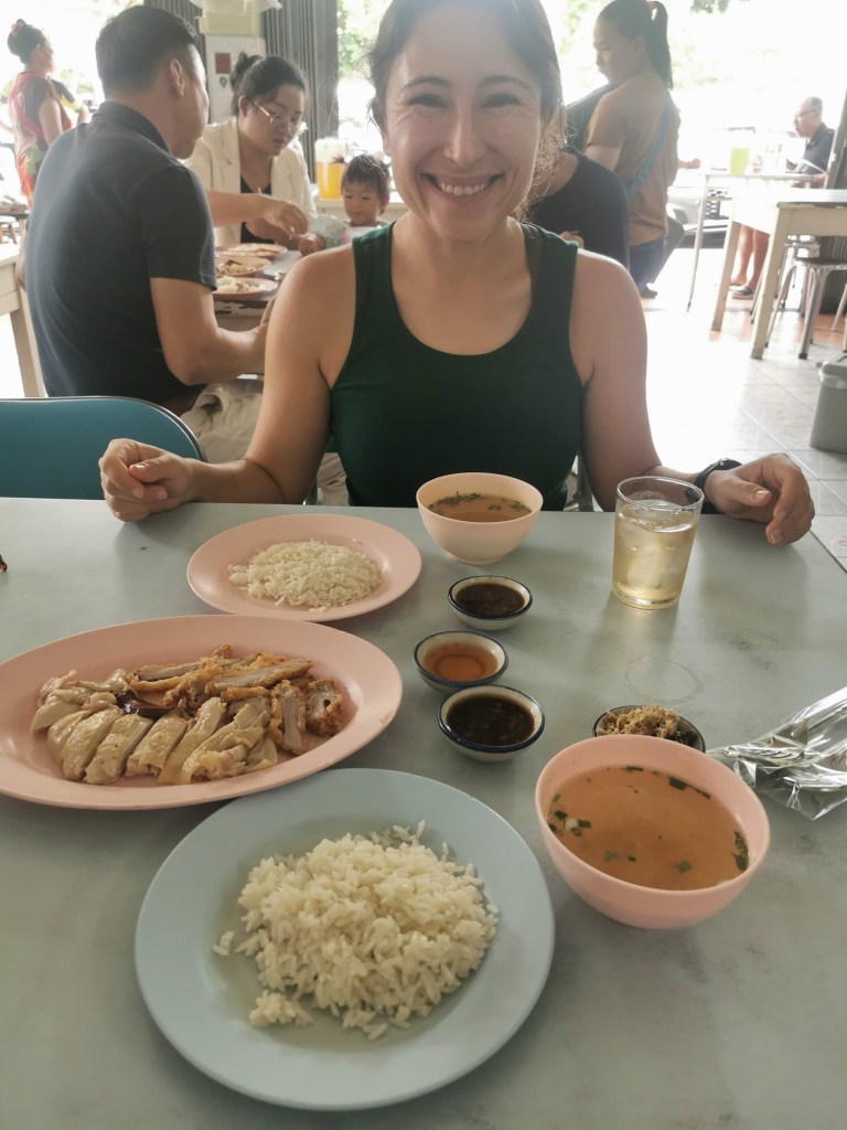 Our final full day in Chiang Mai began with a relaxed morning, as we had signed up for a cooking class that would take up most of our afternoon and evening. We spent the morning walking around, trying Hainanese chicken and rice for a light lunch before our big evening. It is advertised in English as “boiled chicken”, which doesn’t sound particularly appetizing, but we enjoyed it! We quickly learned that the deliciousness of the dish depends on mixing up a blend of sauces yourself to season it.