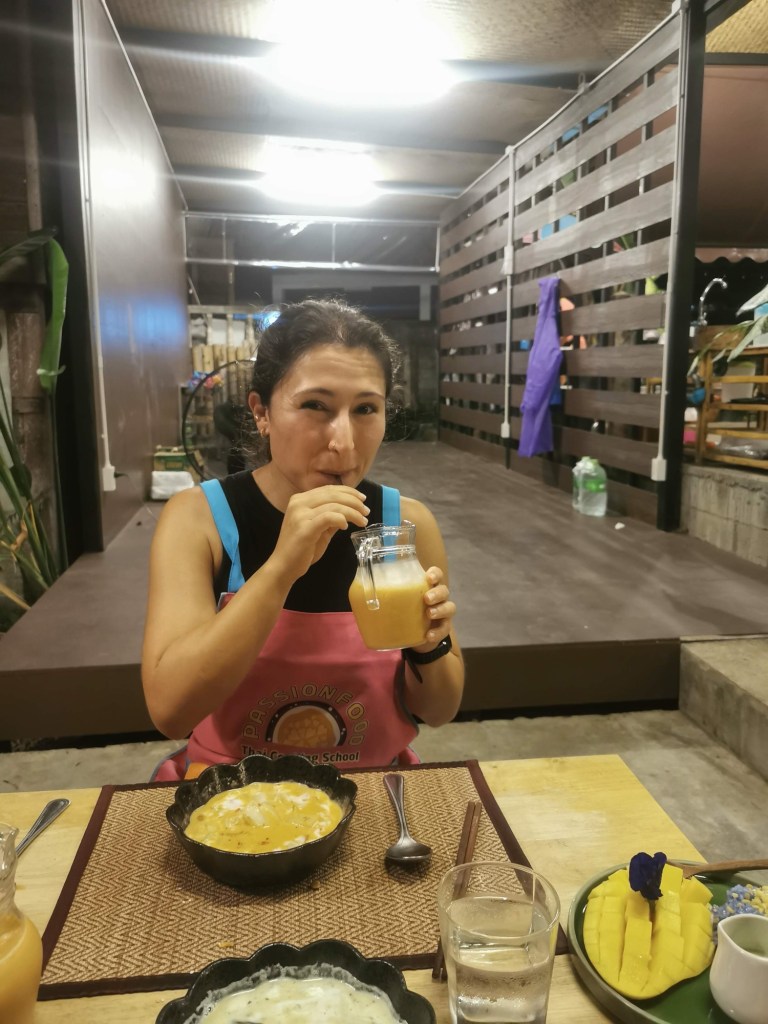 Back in the kitchen, we began prepping the foods. There was a lot of chopping and grinding of spices using a mortar and pestle. The biggest takeaway from this class was that Thai food beautifully balances sweet, spicy, salty, and bitter flavours in so many creative ways.