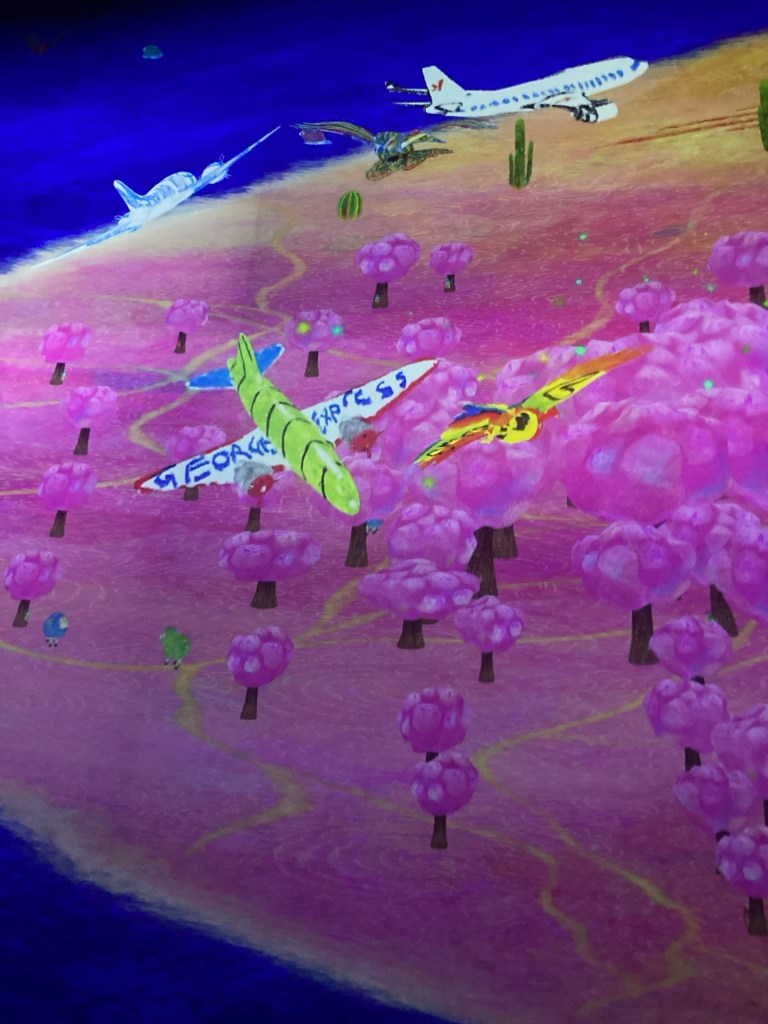 We bought tickets for the Future World exhibition, which had various light and interactive displays. A highlight for us was an exhibit involving colouring in a plane or bird design, scanning the image, then being able to “fly” your design across a huge screen using a controller device. Unfortunately, some parts of the exhibition were closed, so we were given free tickets to the Goddess Exhibition, which looked at the role of women in the entertainment industry. This exhibit was great too.