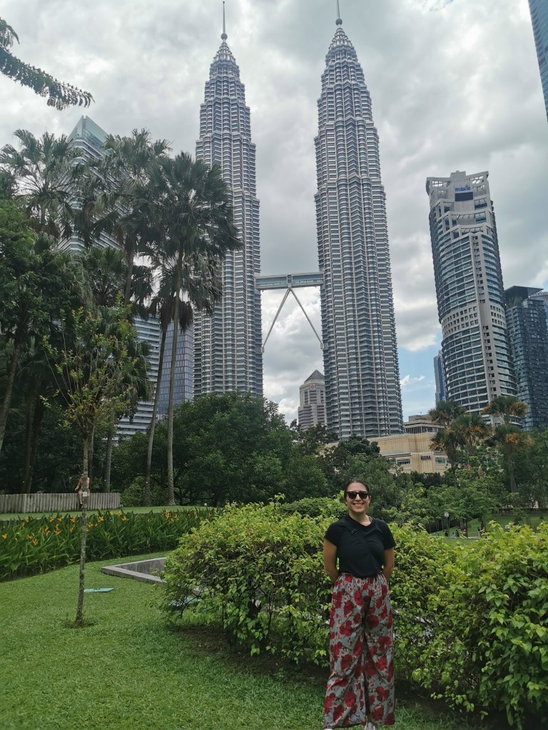 Our next stop on our DIY walking tour was KLCC Park, which is a giant green space near the world-famous Petronas Towers. It was actually very exciting to see the Petronas Towers in person. I remember growing up always seeing them in the Guinness Book of World Records type of books, as they used to be some of the tallest towers in the world (officially the tallest from 1998-2004, and now the 21st tallest in the world at the time of writing this post). It was one of those funny but surreal travel moments where I was visiting a place I had always wanted to see but never knew how or when I was going to get there!